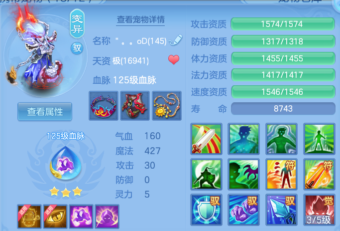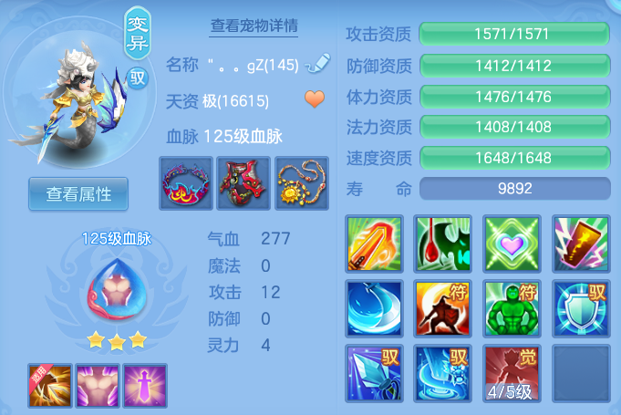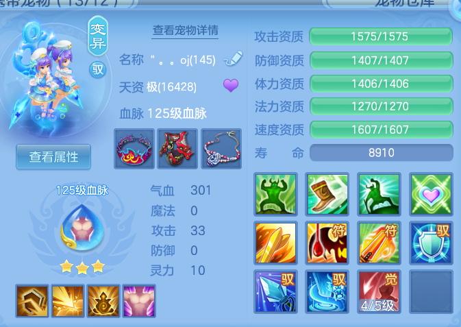 1仙。57神兽丹加内丹,500w银,6宝宝皮,13段,59个兽魂果。一套法师装备,半价转职票,元宵,极品护肤