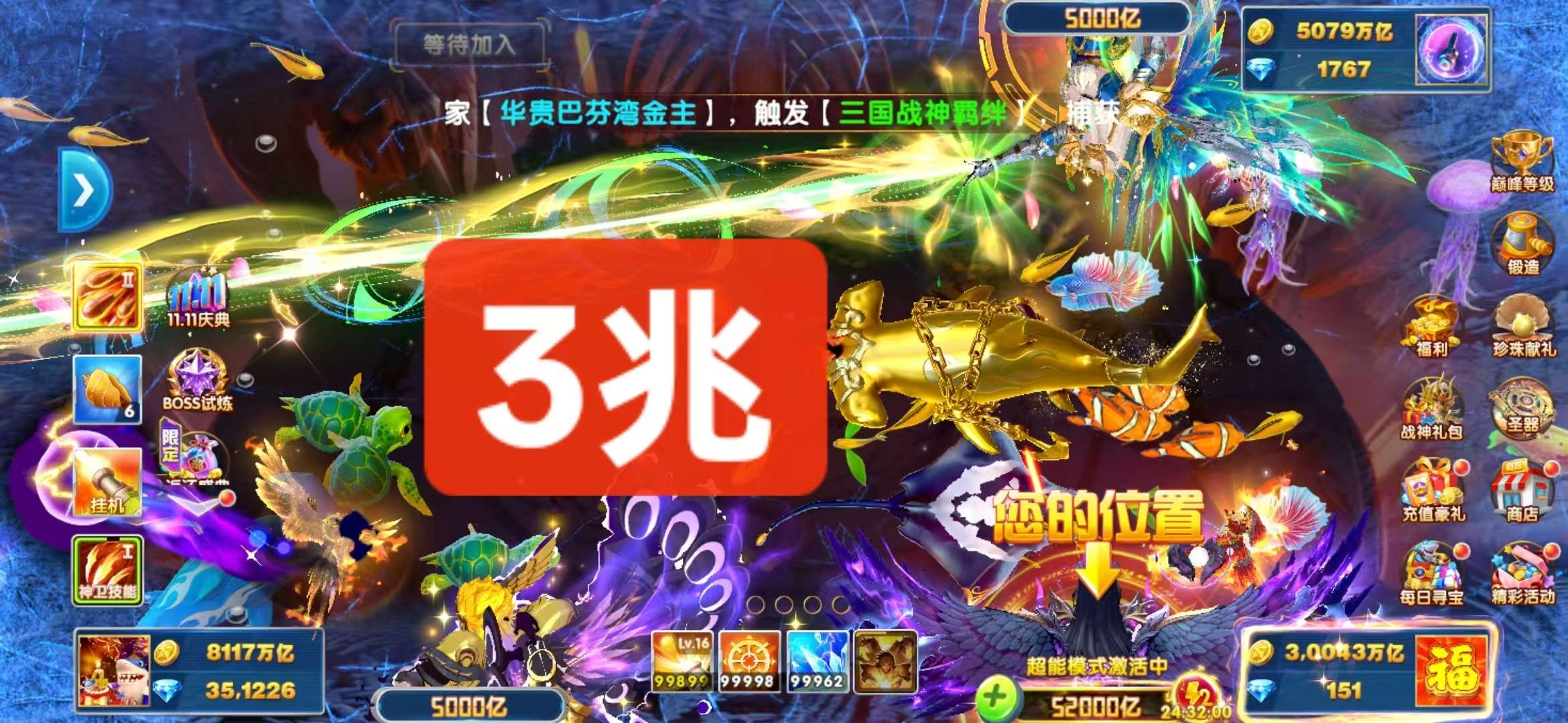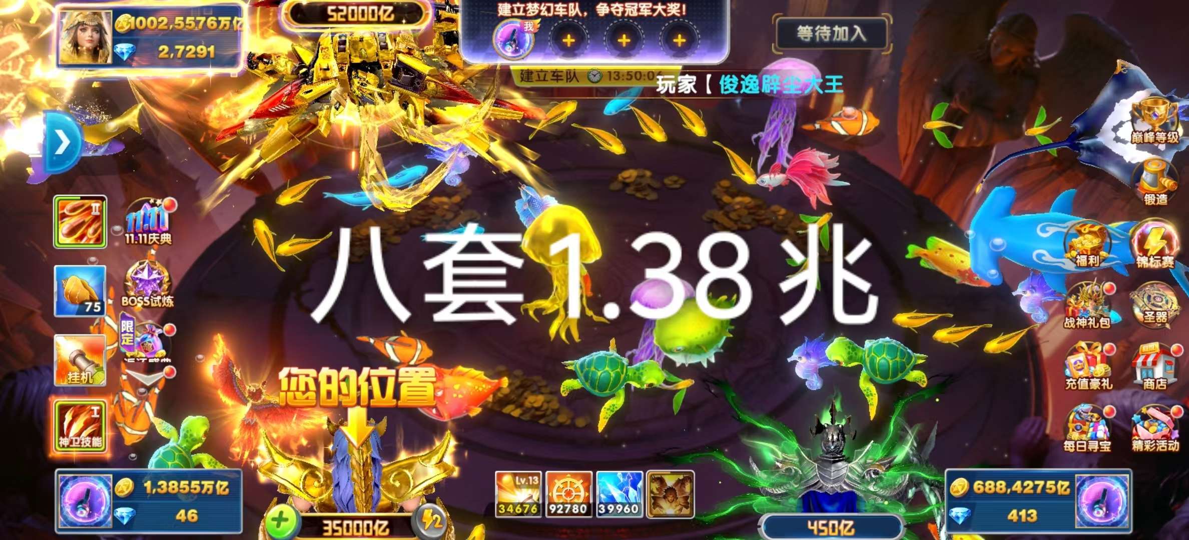 捕鱼大作战,官方10级套,爆率超高,只要有起步金币,轻松上百兆,现在可以日租,