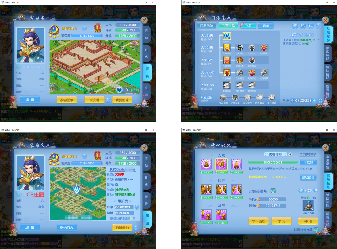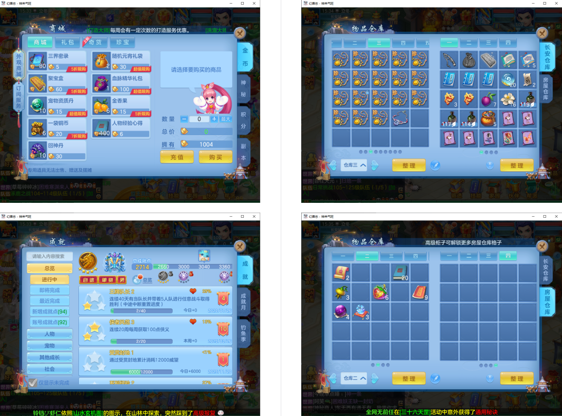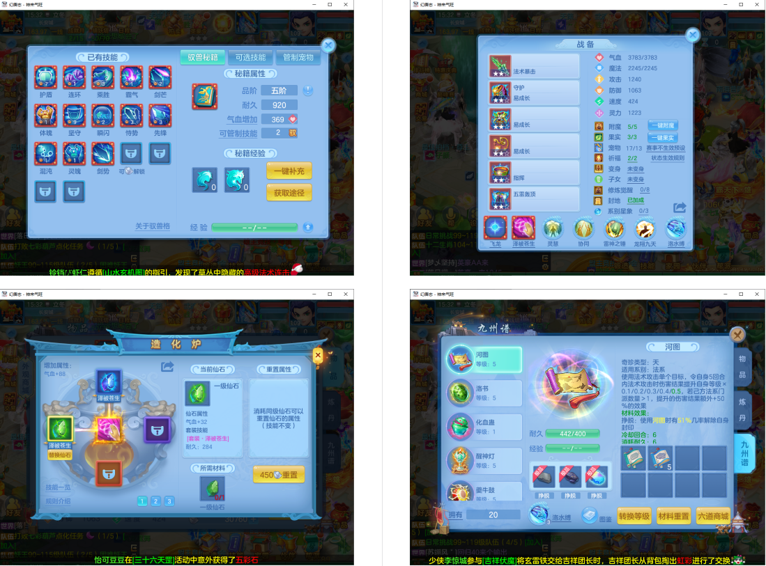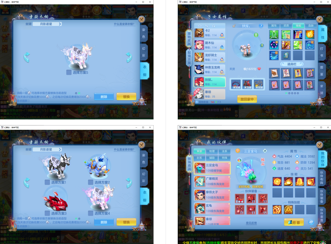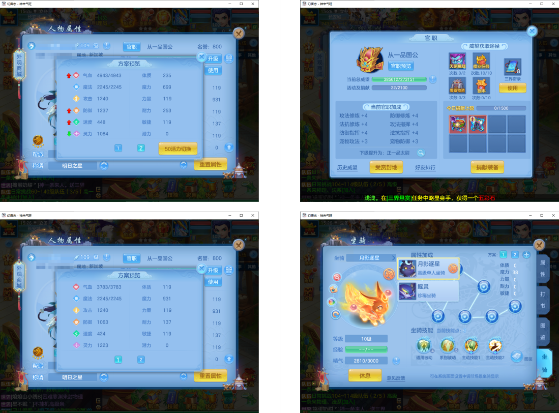 4件13段1件12段1件10段,易成长,满魂仙兽+双内丹满魂神兽(玉龙+鼠),9个6多特殊5(总11满魂),6红4黄,高级坐骑5染,CP庄园,2714成就