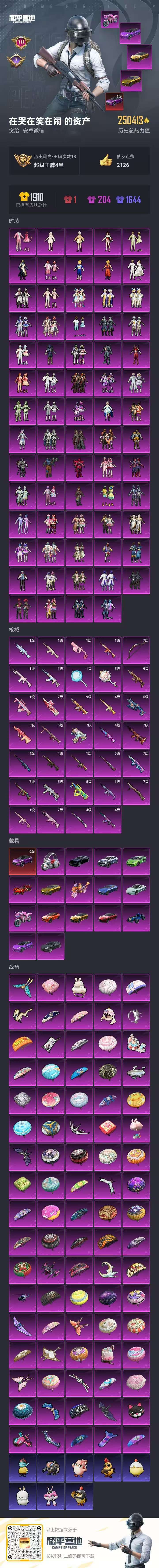 hs49769 安卓v-18王牌印记-69粉装-34特效枪-17载具-250413热力值-392套