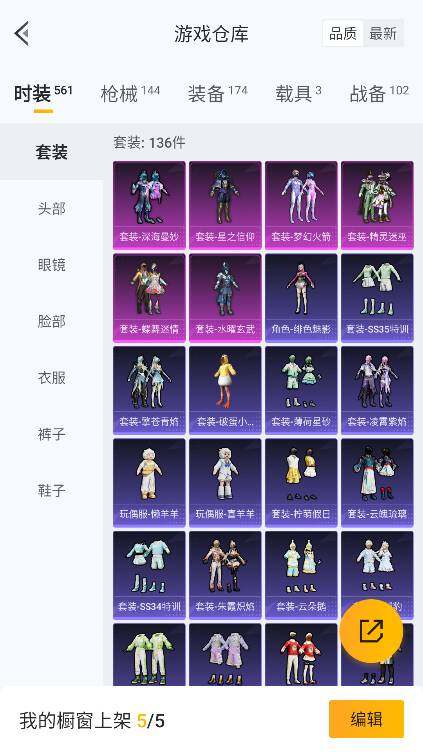 时装数: 136 载具数: 3 枪械数: 144 战备数: 102 热门装扮: