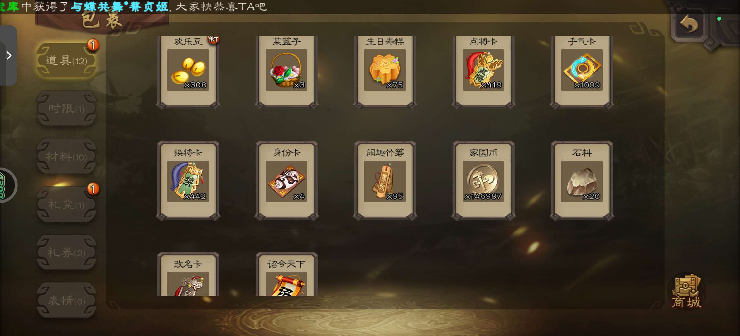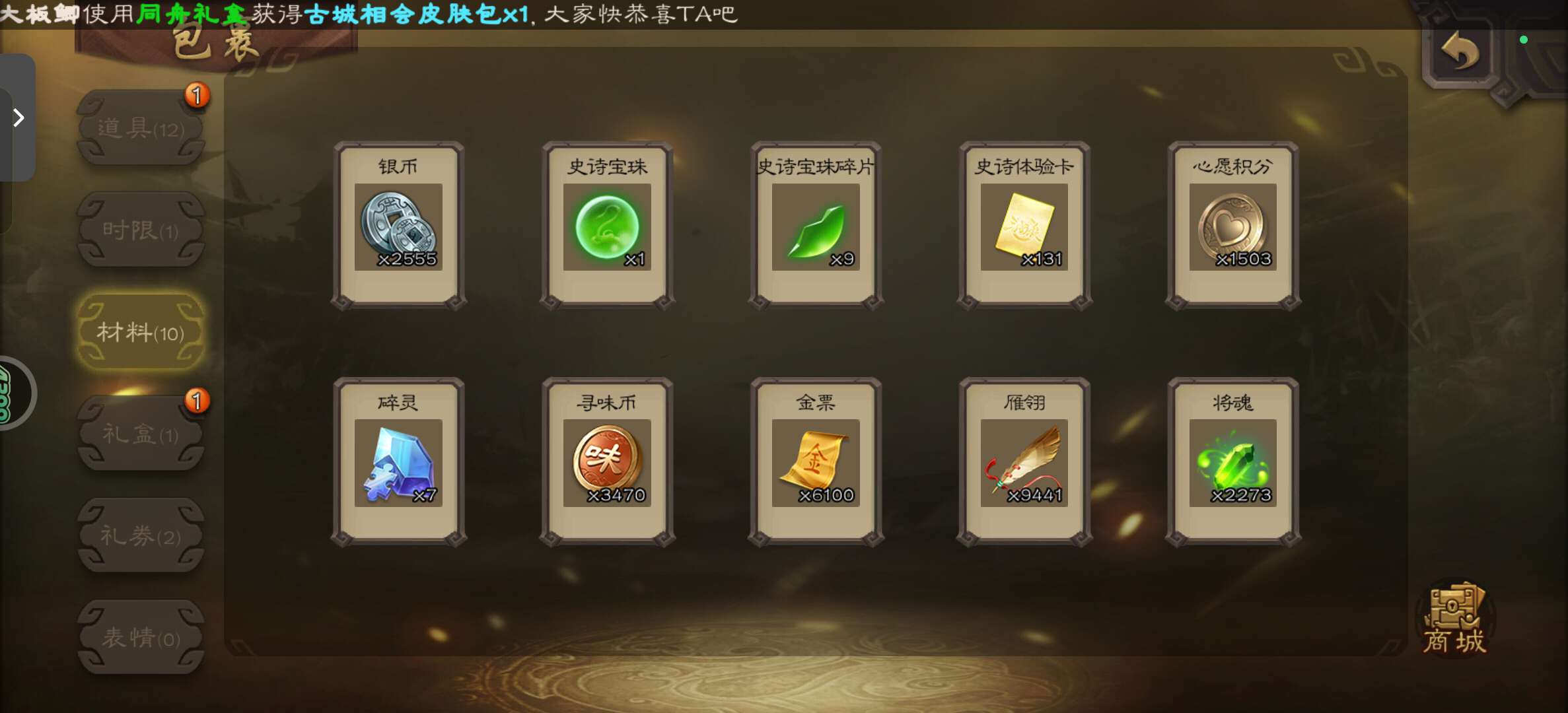 曹髦,活树,三卡充足,浆糊2200多,宝珠1.9个羽毛9000银币2000多,金票6000