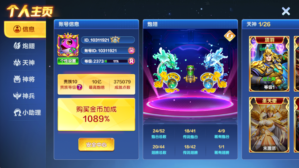 捕鱼大咖官方版本卖断一个v10破产号,10亿炮,有天神,可解绑。包安全