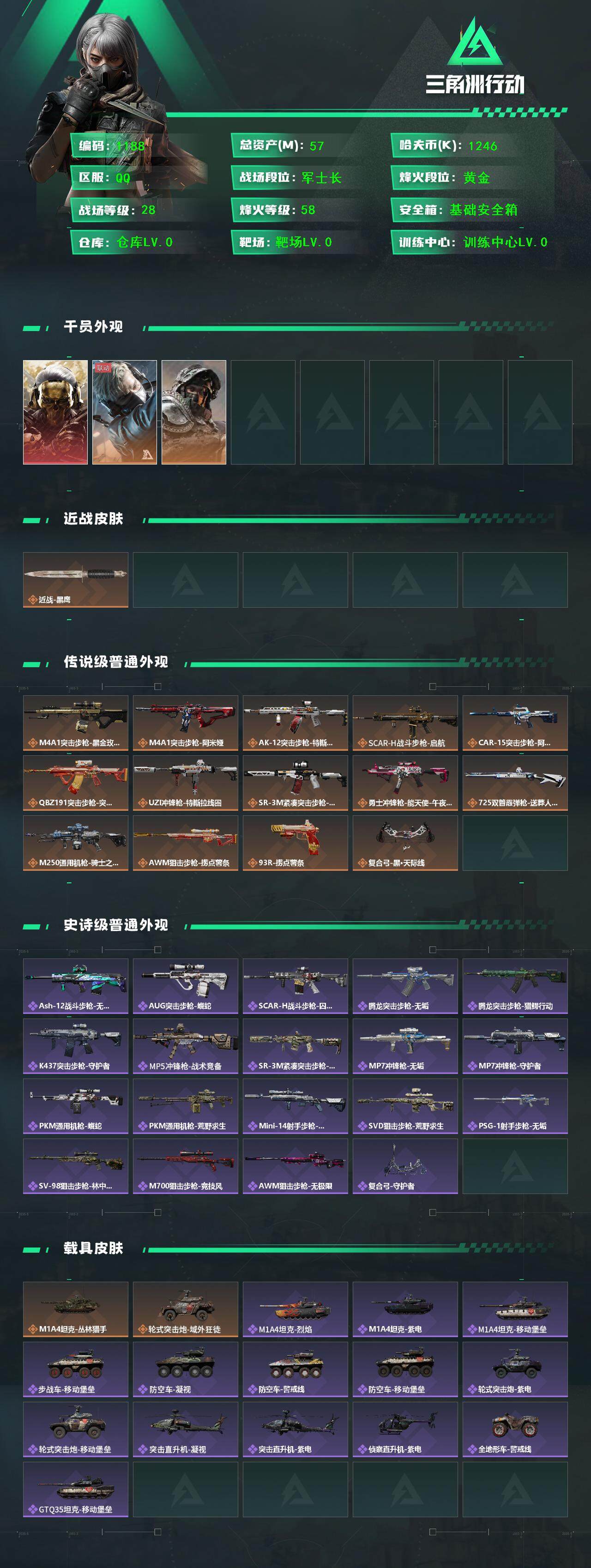 1246k哈伏币-46m流动资产-58烽火等级-黄金-28战场等级-军士长