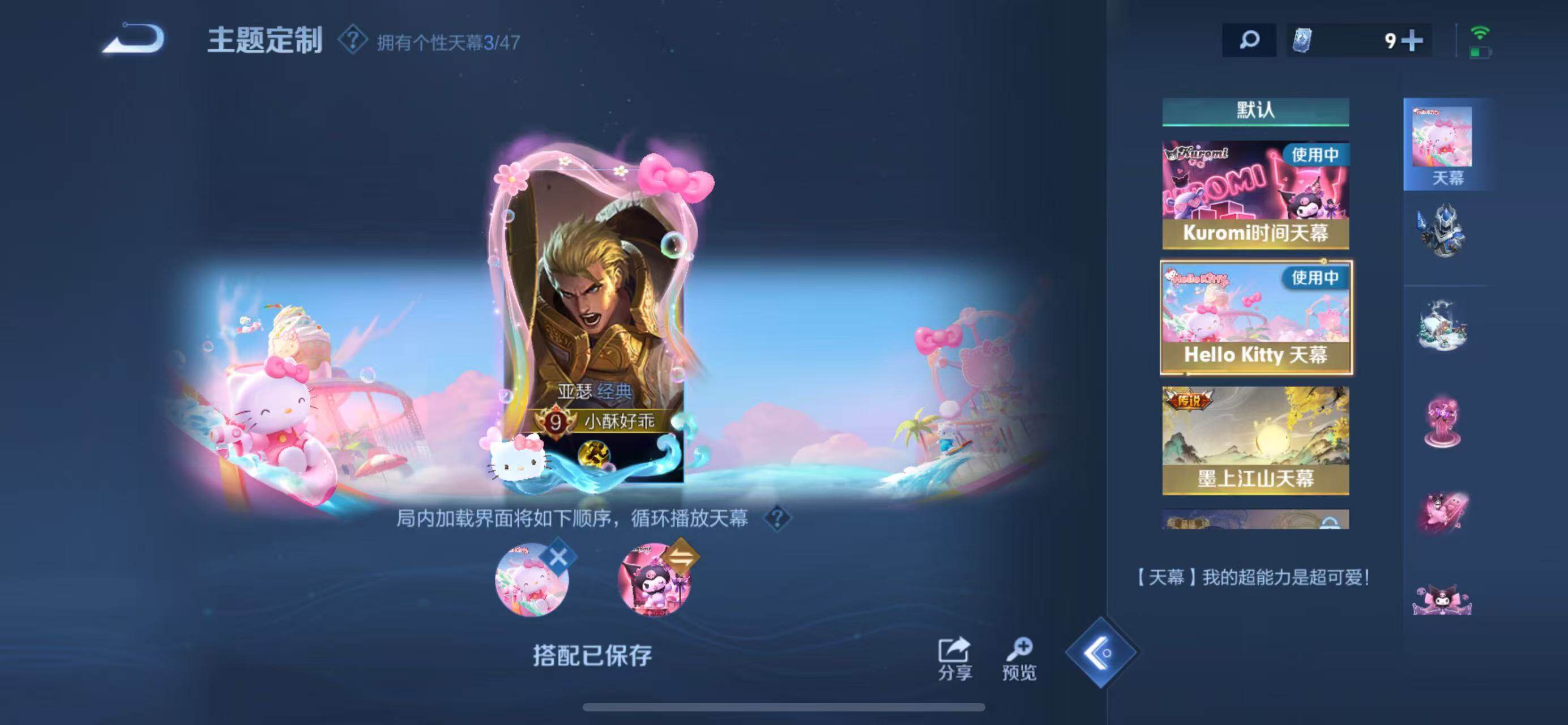 iOS,极品女生号/国服嫦娥/国服桑启/金标瑶+紫瑶/金标不知火舞/金标镜/HelloKitty天幕/Kuromi天幕/V9-306皮肤6典藏1无双37传说,拾光映像,天鹅之梦,大秦宣太后,鸣剑曳影,星域神启,九霄神辉,真我赫兹