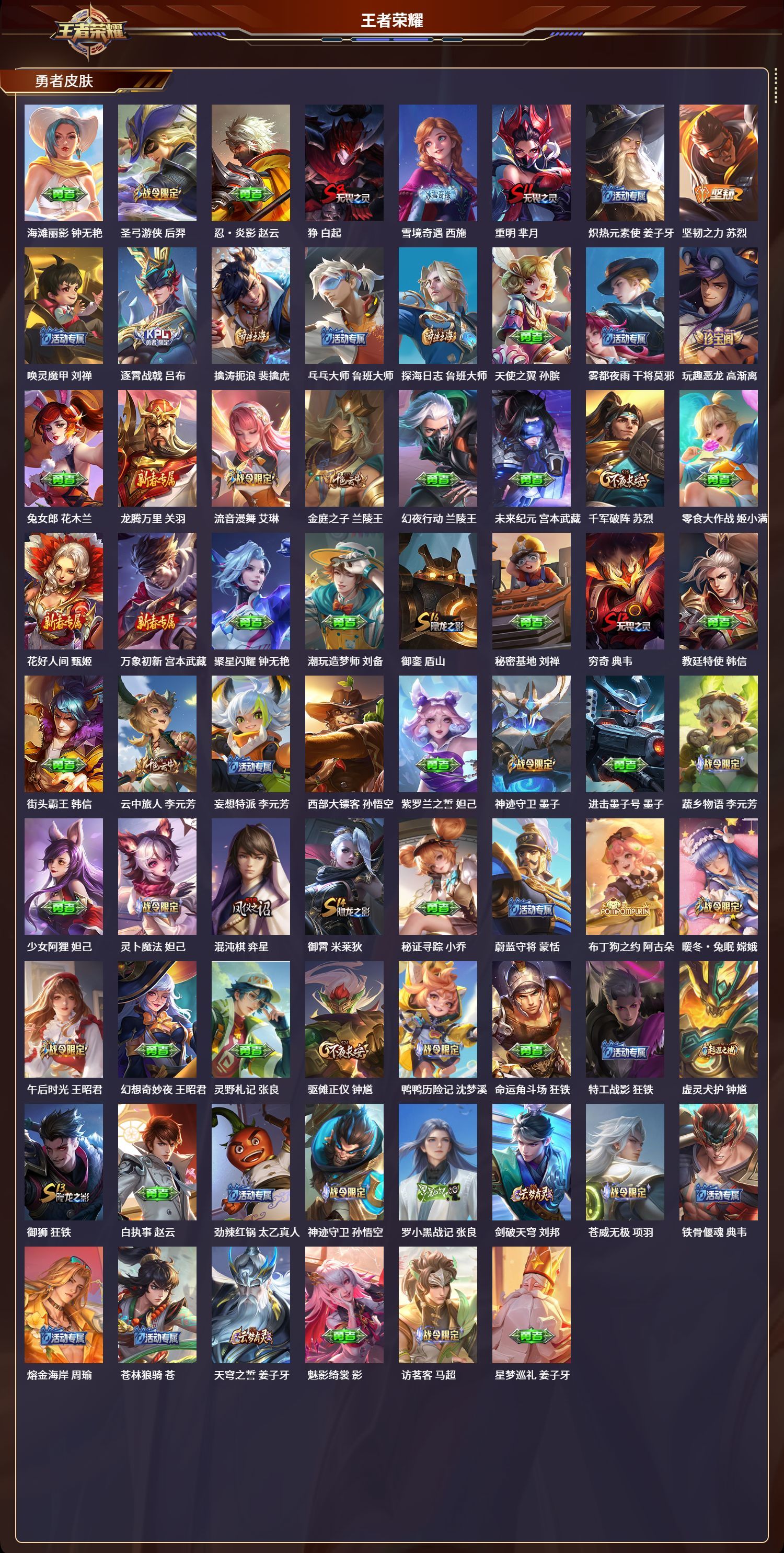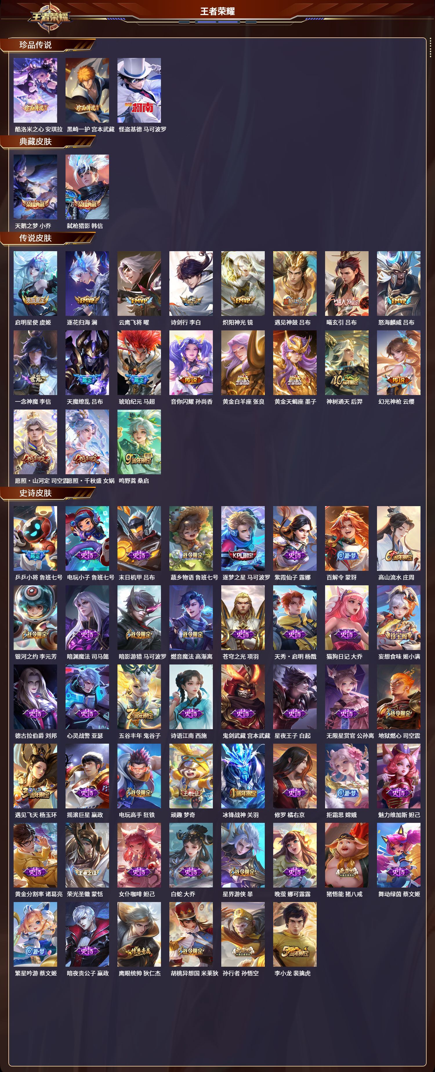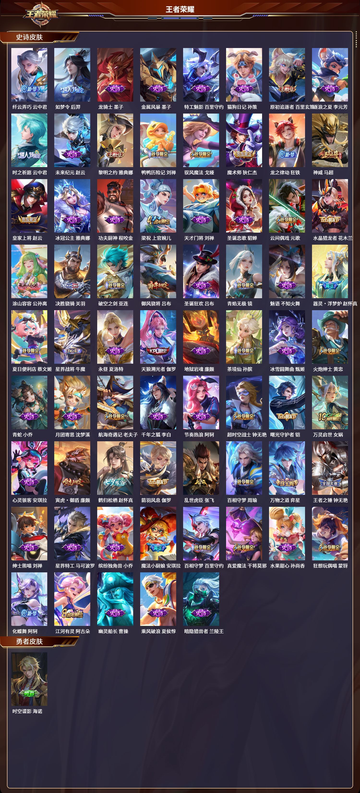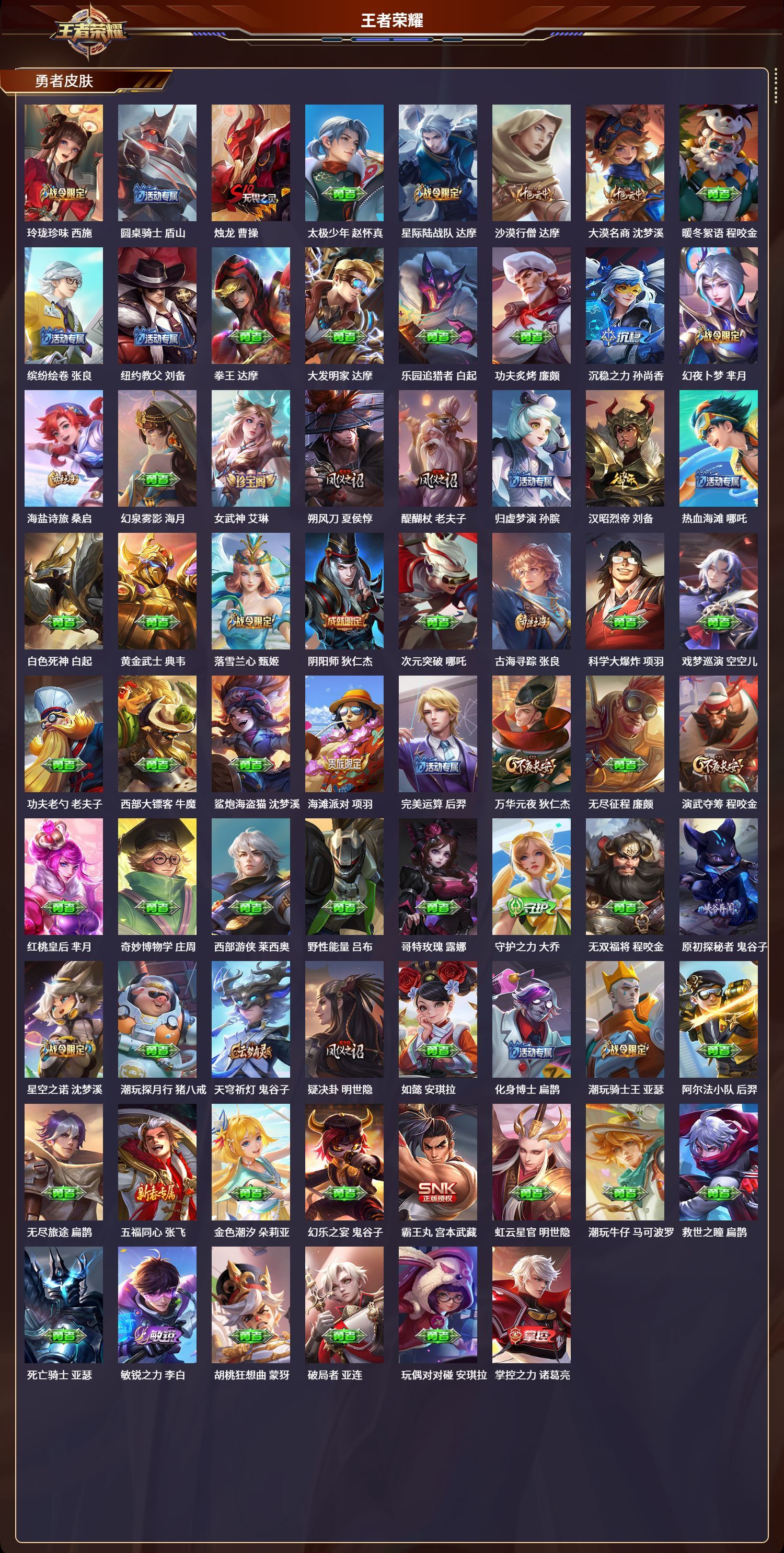安卓QQ/荣耀王者/357皮肤/127英雄/2典藏/0珍品无双/0无双/3珍品传说/19传说/115