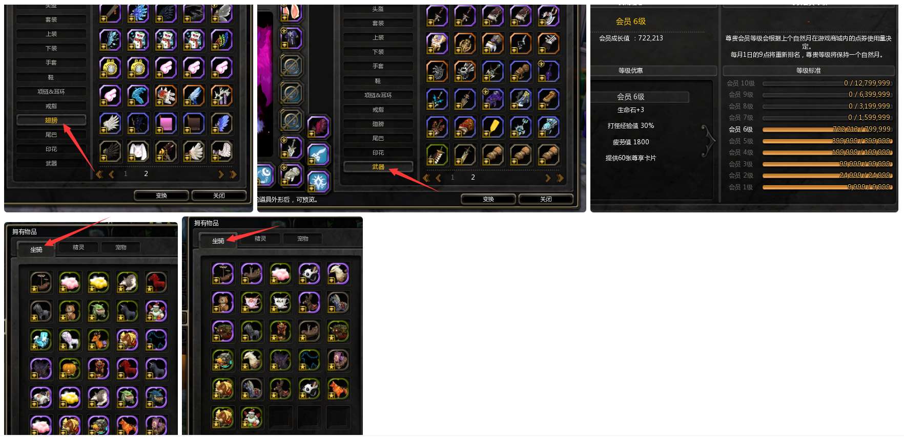 v6最帅光明紫魅特武十几套时装大翅膀坐骑无数9连体都有A时装大翅膀2.5万潘多拉点数复仇者有红龙特武