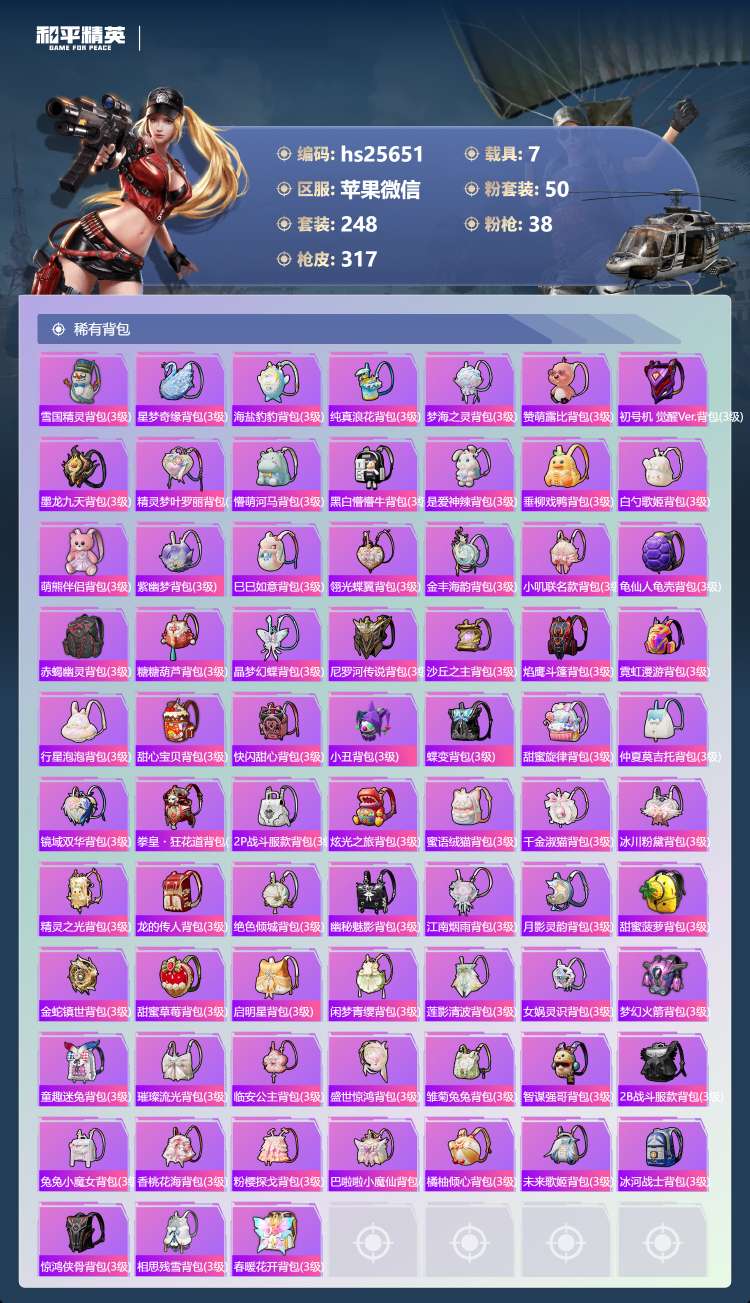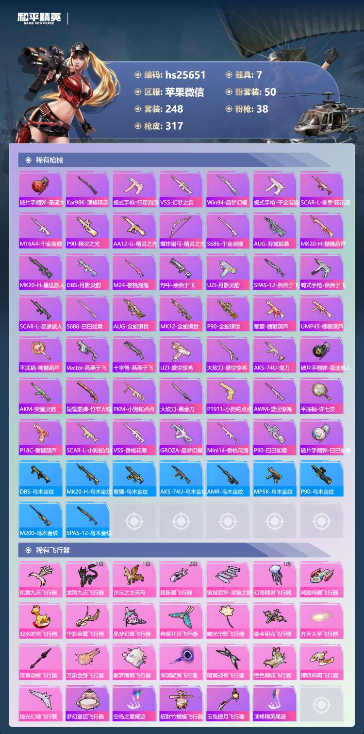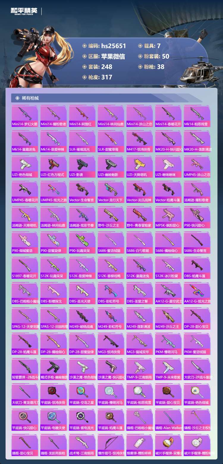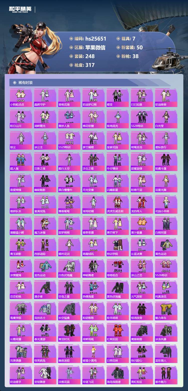 苹果微-8王牌印记-有战神框-5红装-50粉装-38特效枪-7载具-153823热力值hs2565