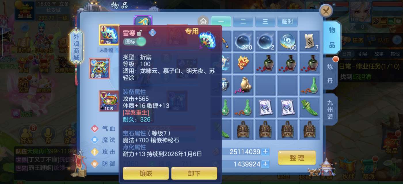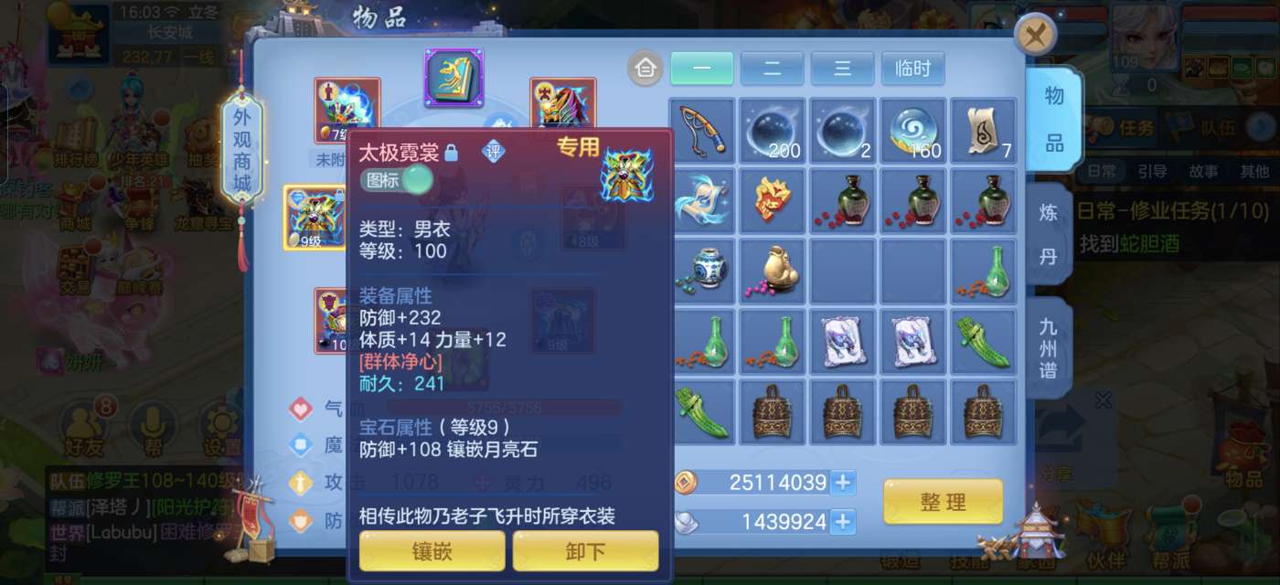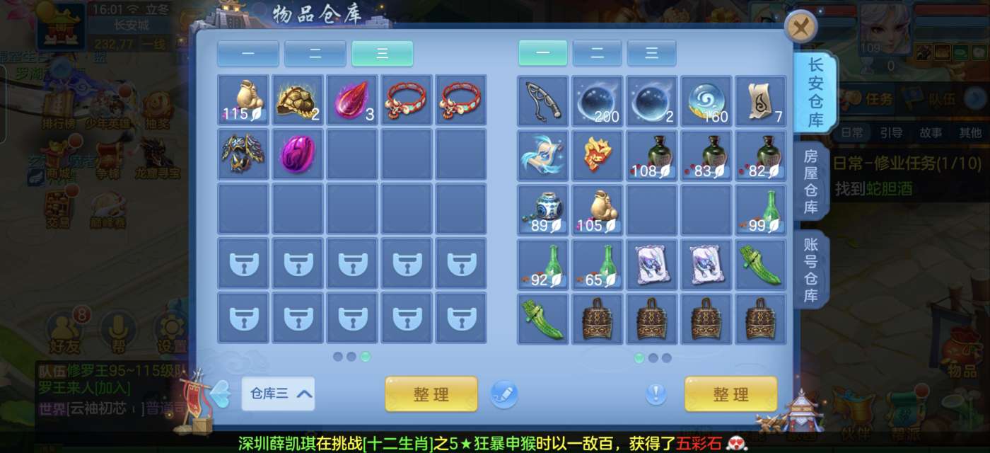 109盘丝 胚子号不玩了 银币100多万 还有30个神兽丹 回归号