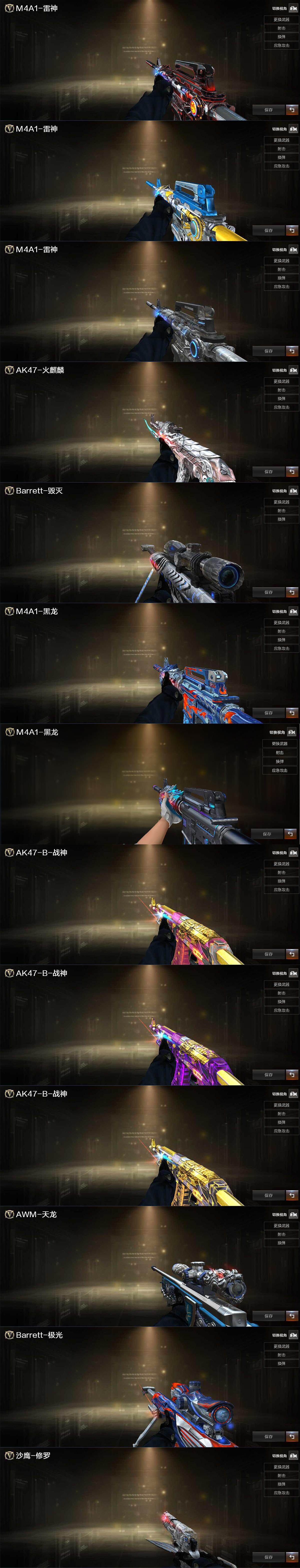 【皮肤】:雷神-暗月,雷神-荣耀之魄,雷神-星空,火麒麟-轻羽皮肤,毁灭-星空,黑龙-能量核心,M4A1-黑龙-36