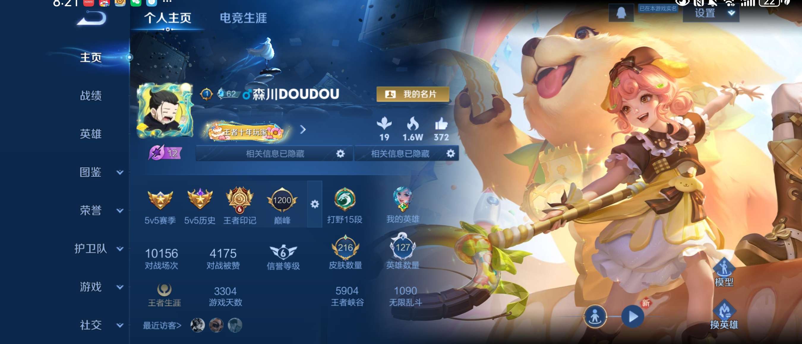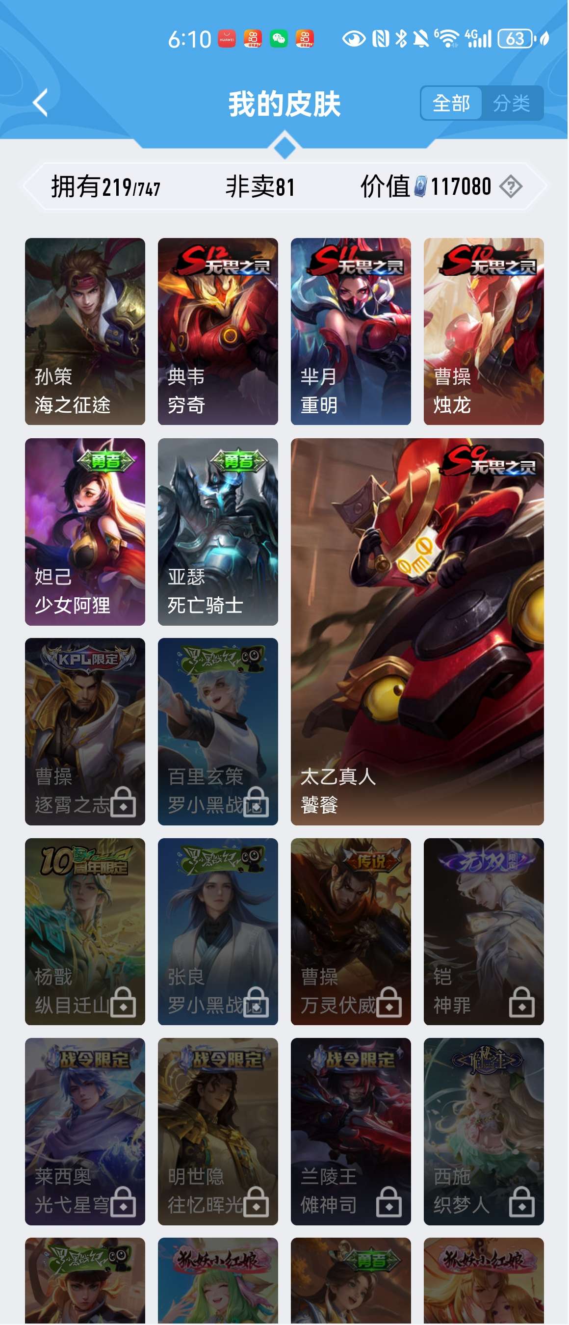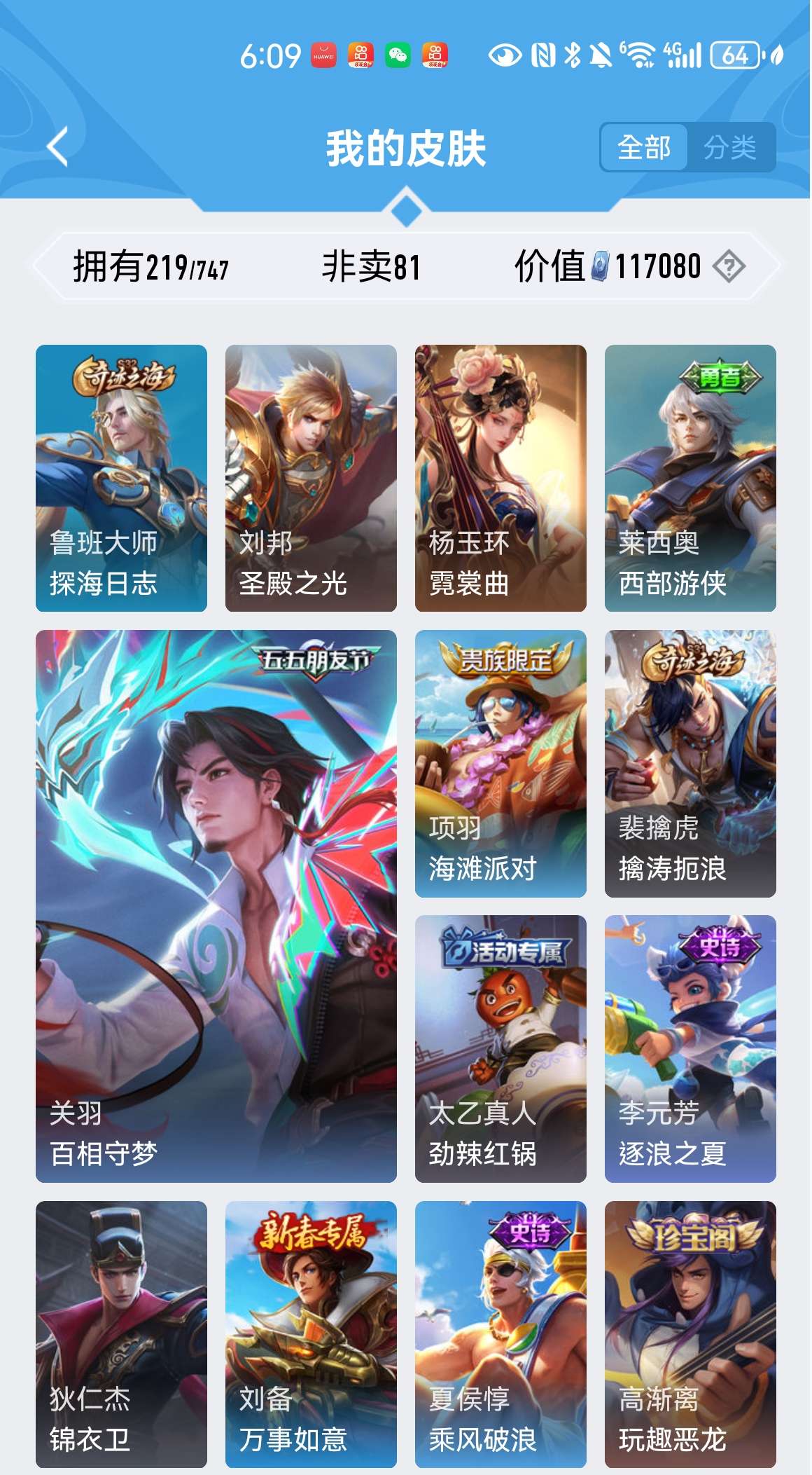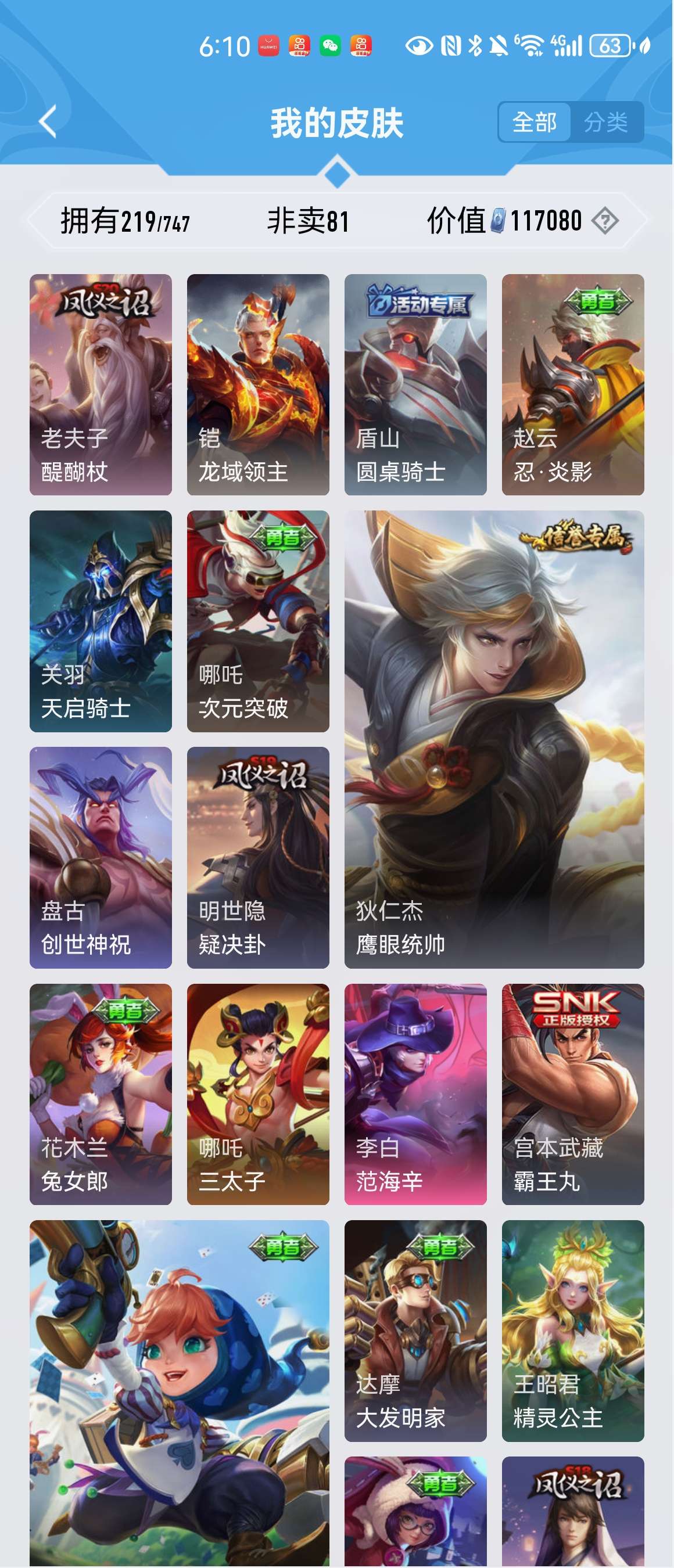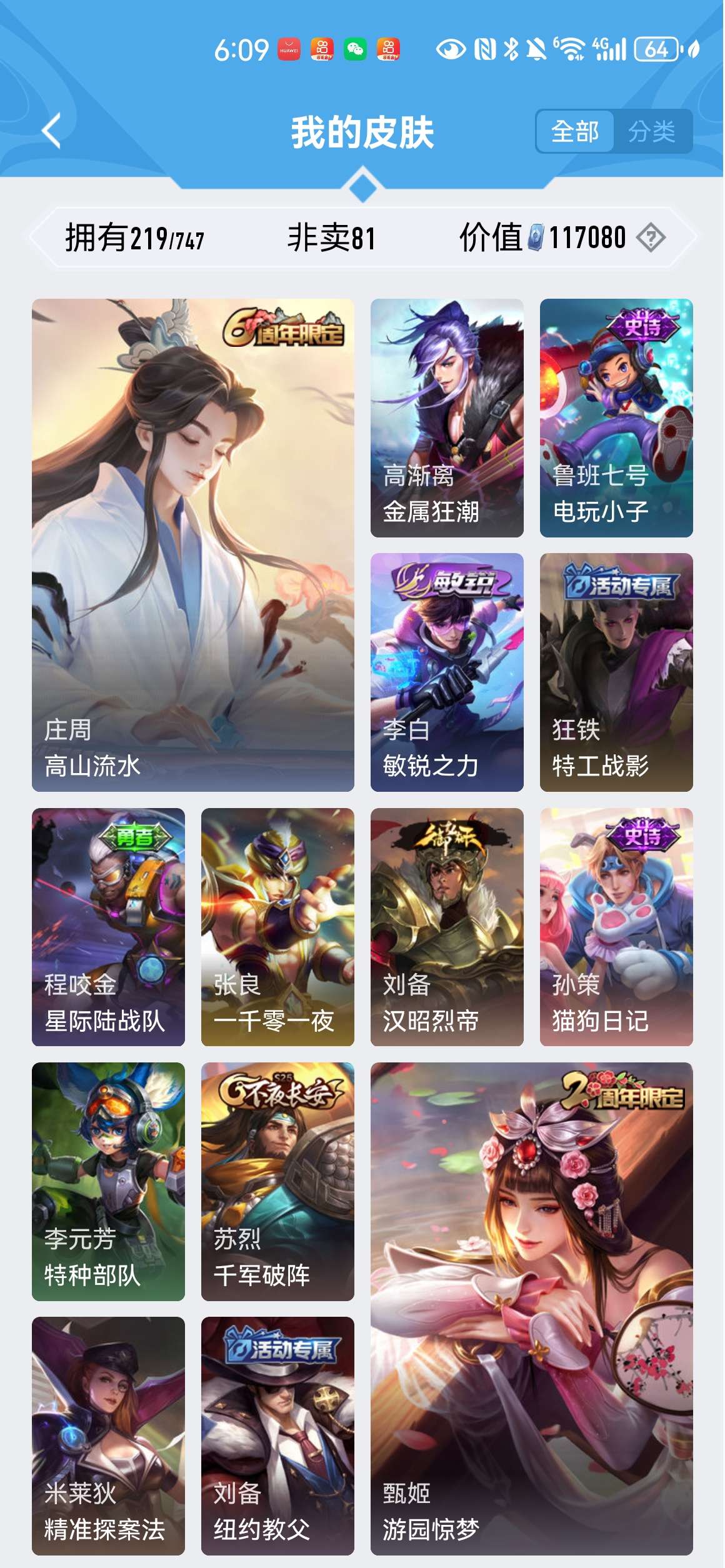 王者荣耀【安卓QQ】皮肤219,英雄127(没武则天),最强王者