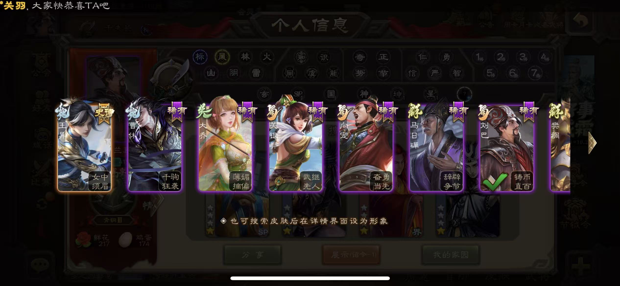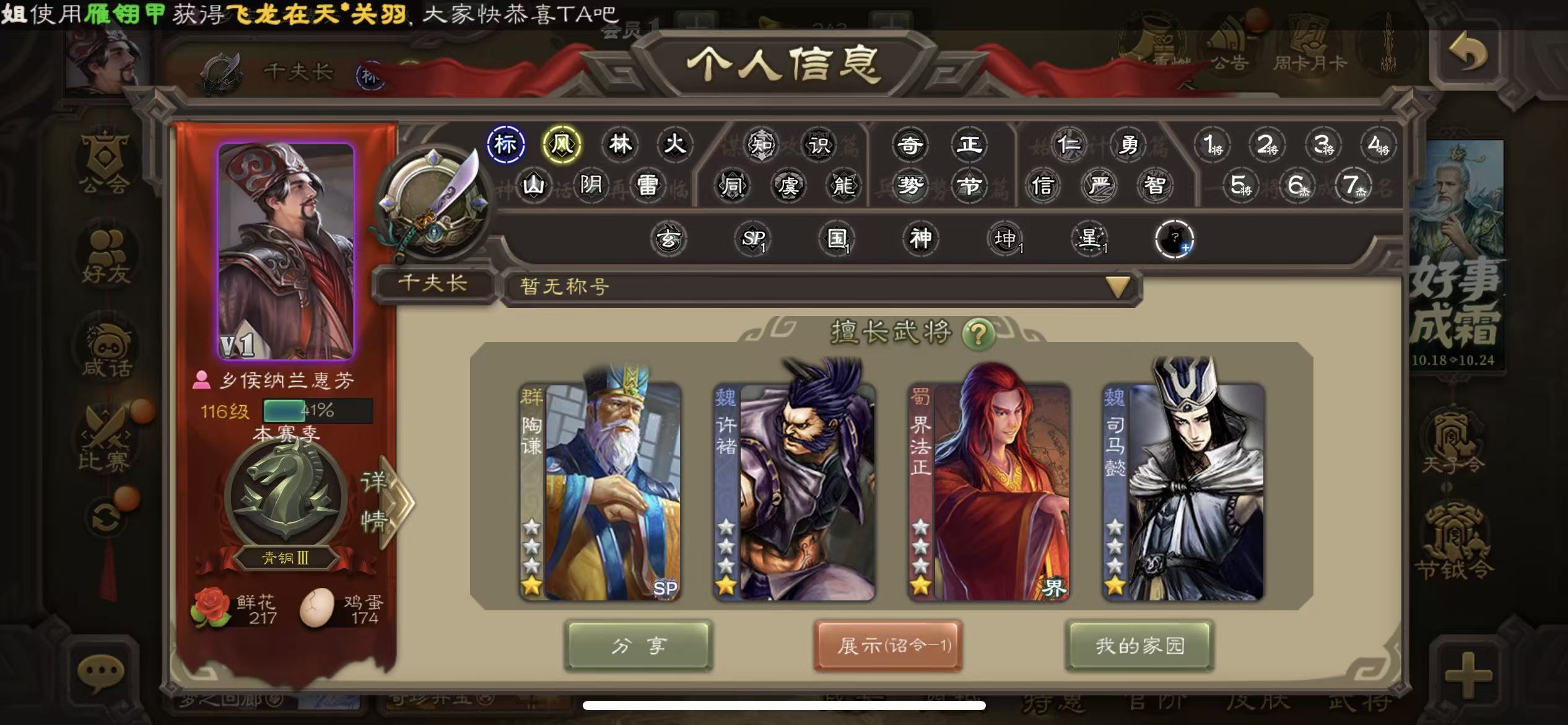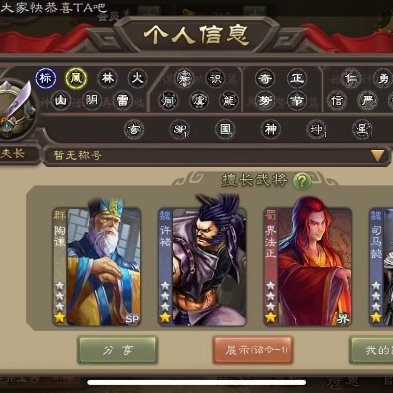 三国杀【安卓官方】千夫长70宝珠5万羽毛6300将魂三卡