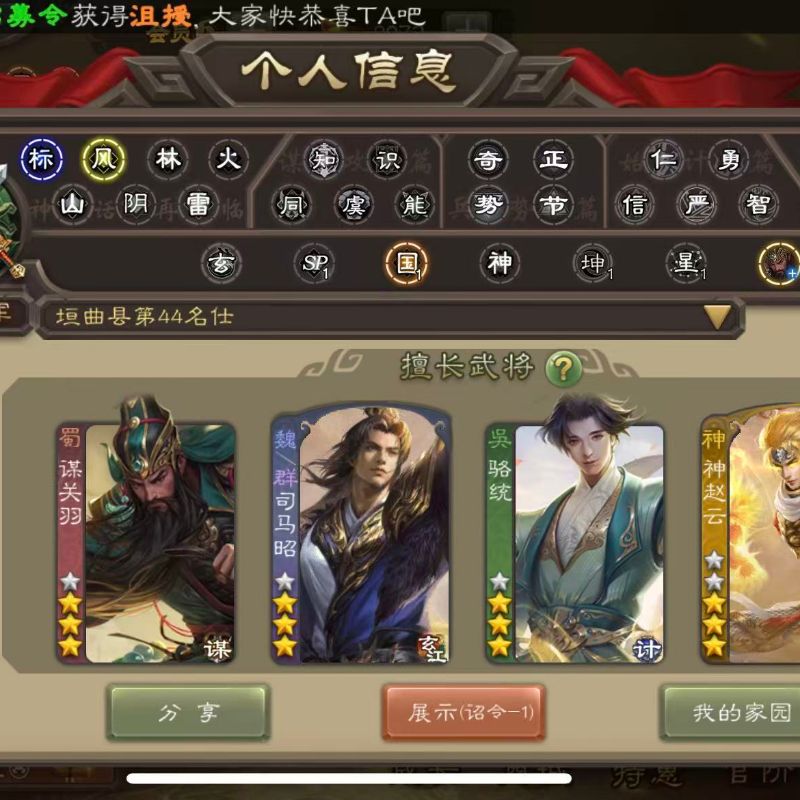 中军动态司马昭谋关羽动态神赵云骆驼诸葛瞻神吕布三卡8000元宝