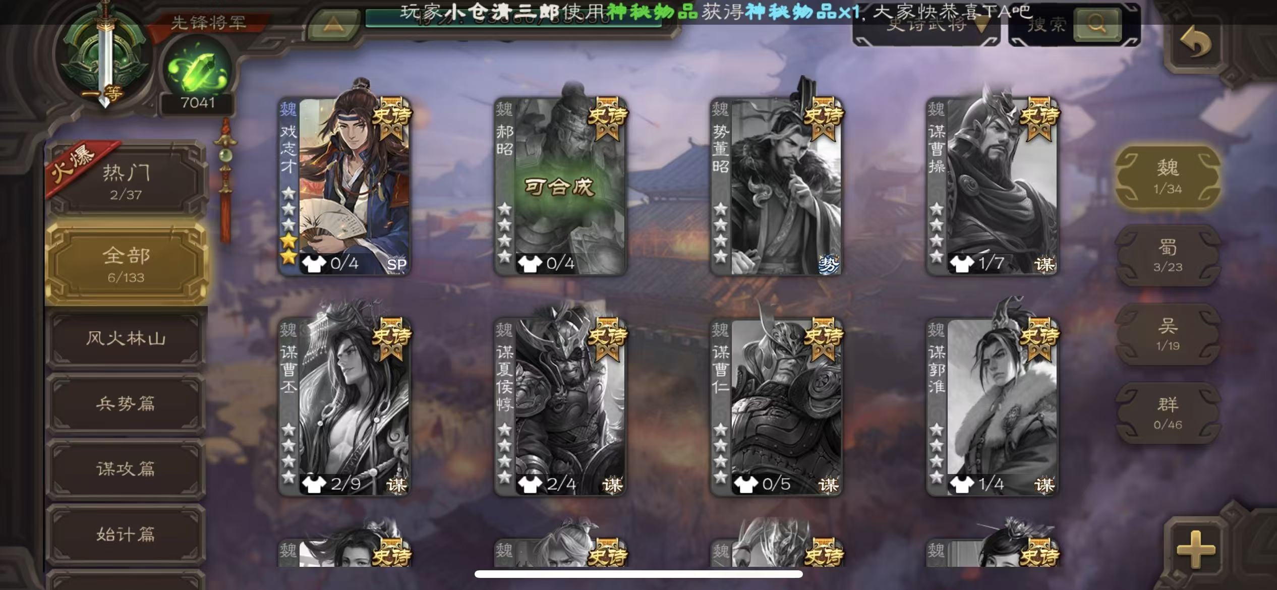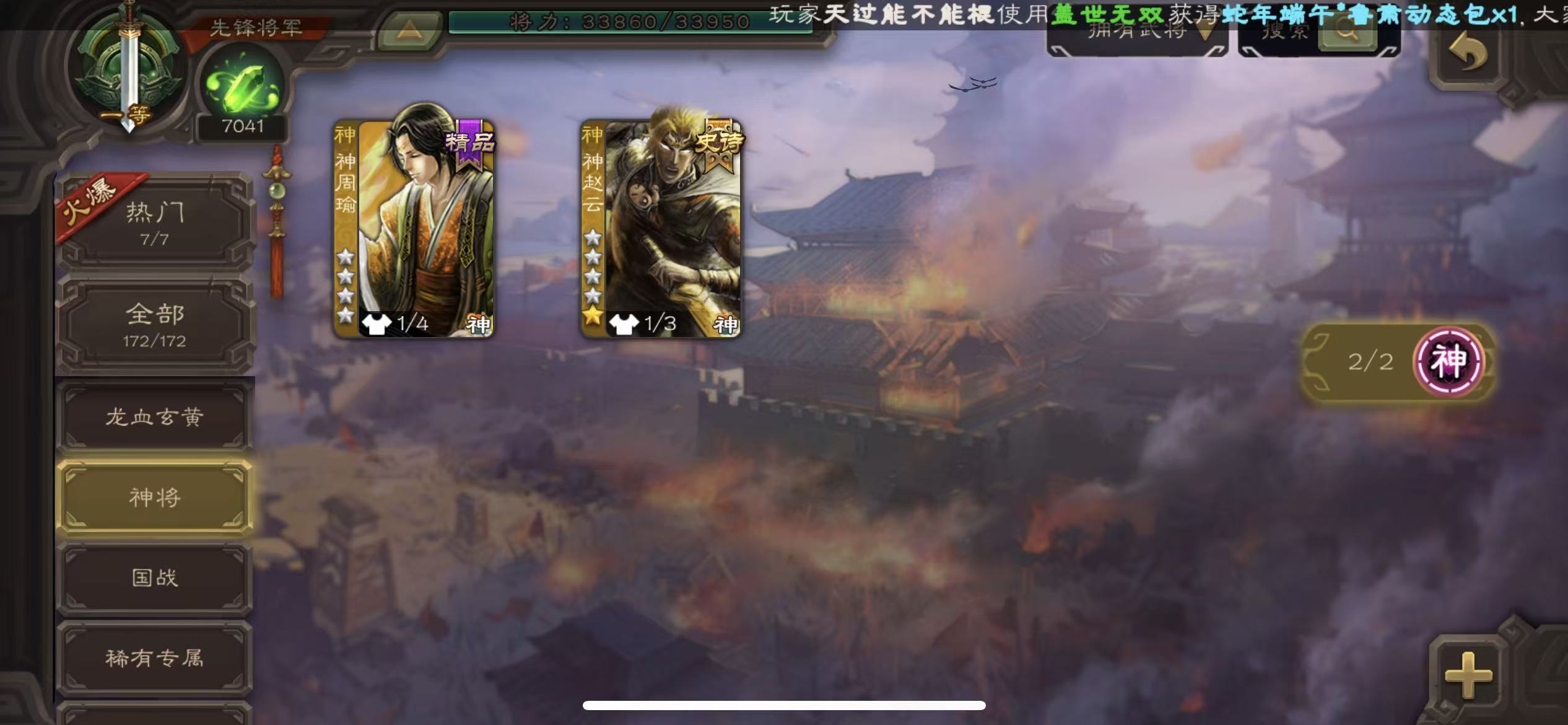先锋22宝珠(可换大宝)谋关羽动态神 赵云戏子7000将魂三卡