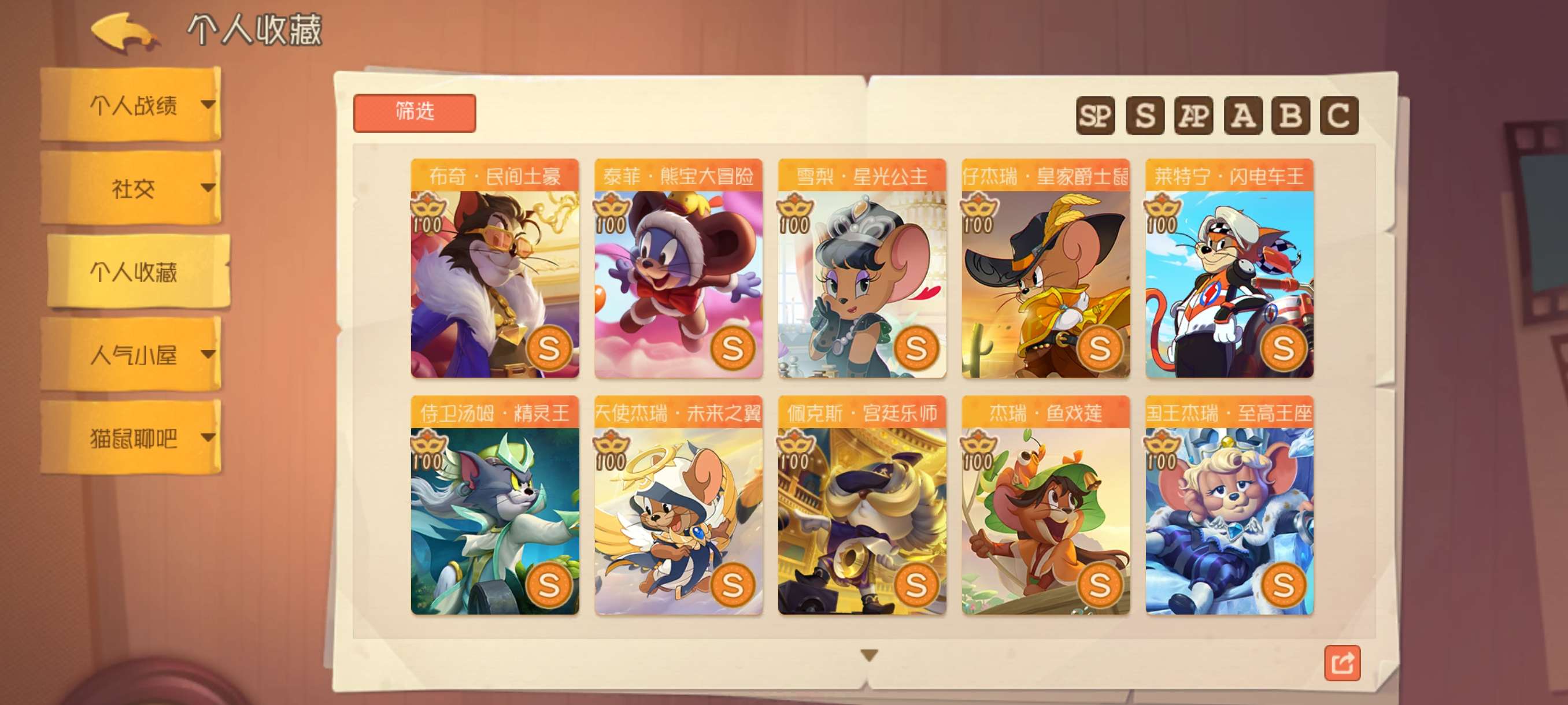 2sssp4sp28sss6ss86S氪金7万全角色5个S染色皮S机器鼠S火箭2个S足迹大表哥魔术师