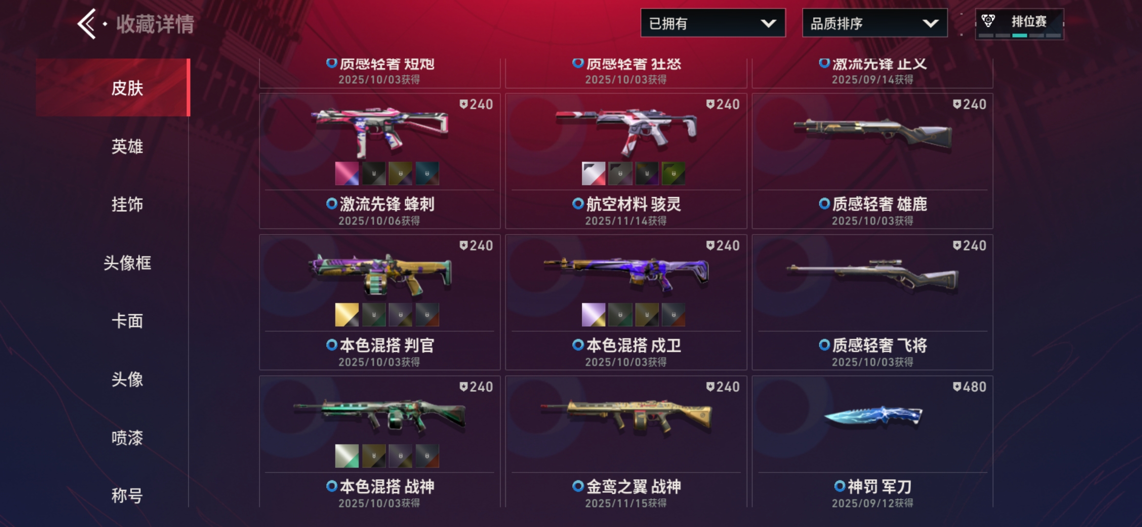 毕业枪皮多已满级热门盖亚堕天使显卡781主战枪皮都有决斗英雄居多多次开通行证历史最高神话
