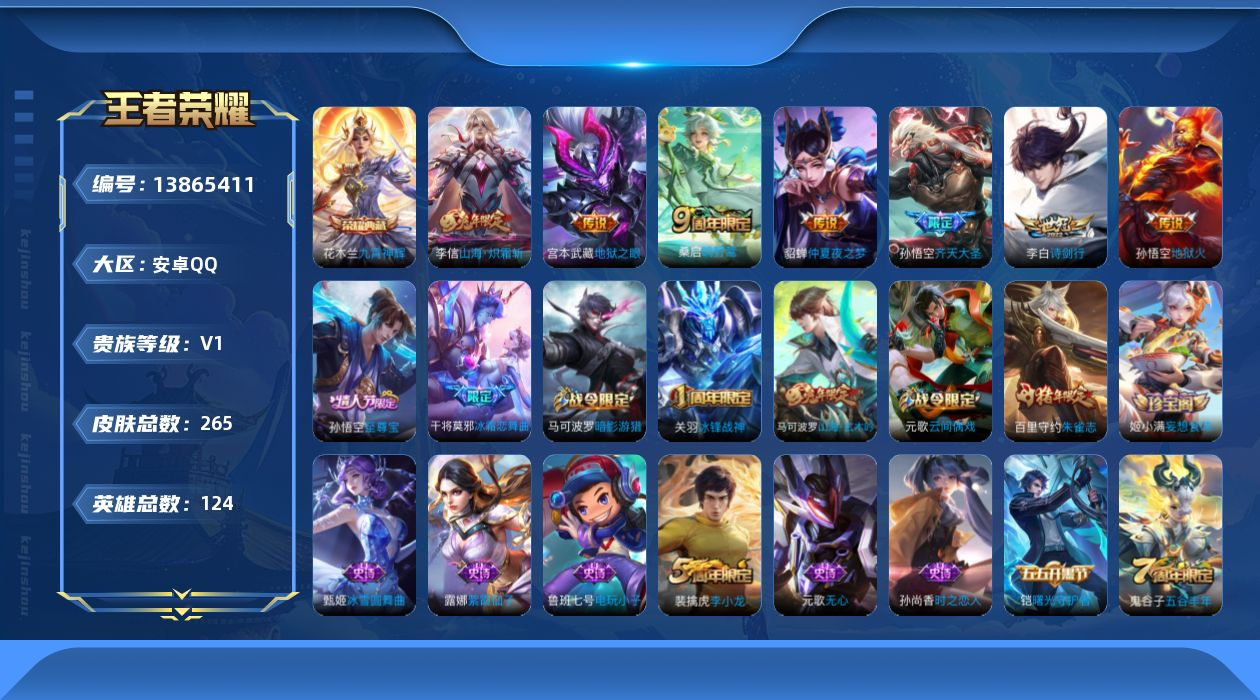 安卓Q-V0-至尊星耀V段位-123英雄-261皮肤-1典