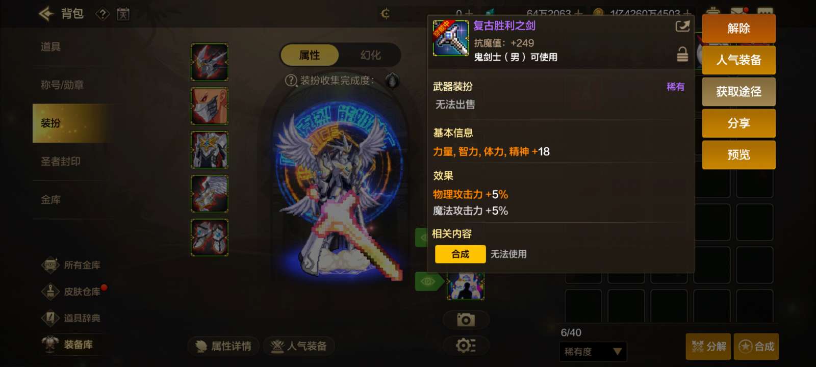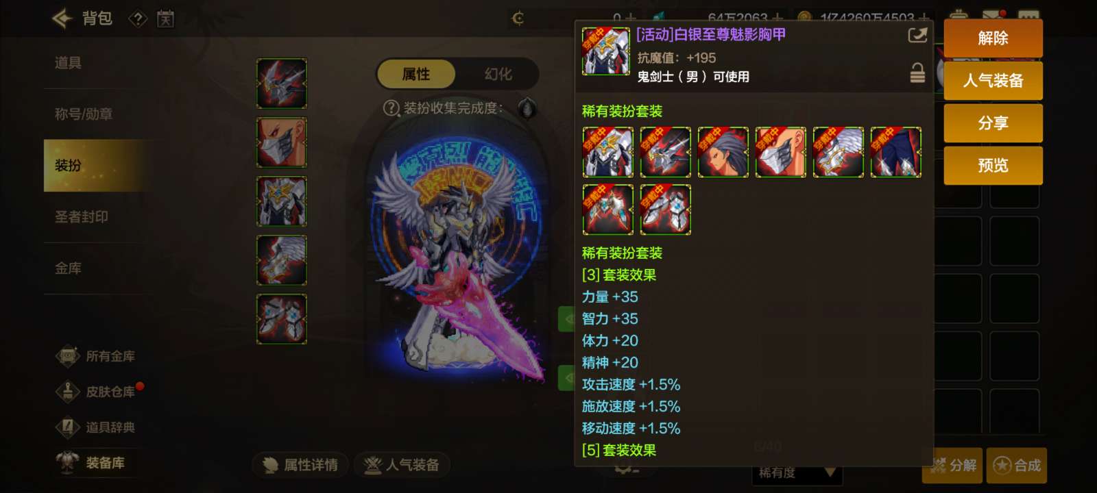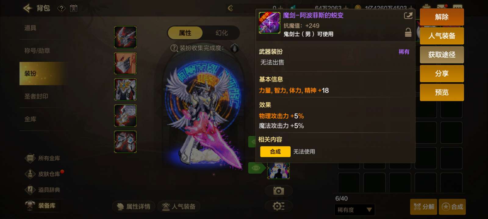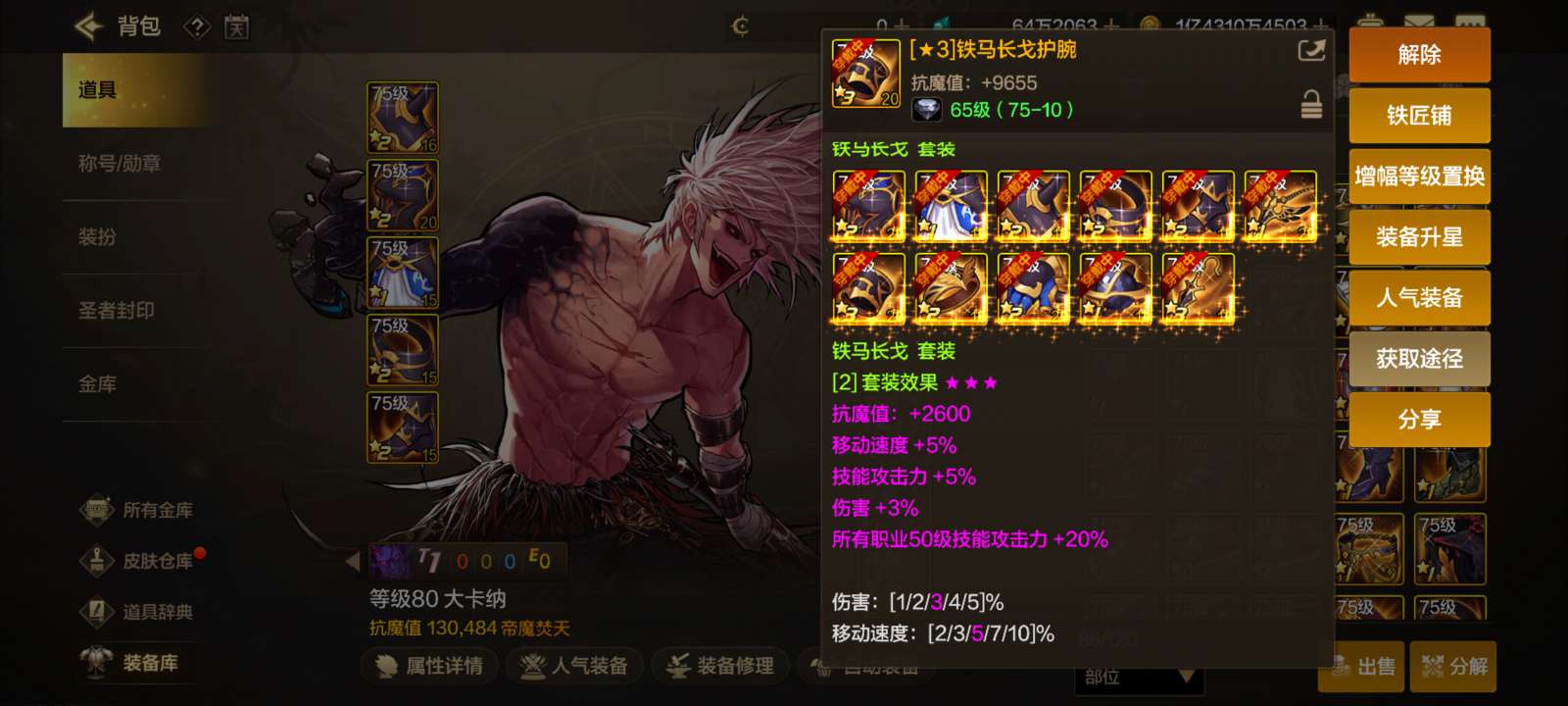 可二次,狂战武器增幅10,魔剑武器装扮,白色天空套,还有60多万泰拉,Q显示违规不影响游戏使用