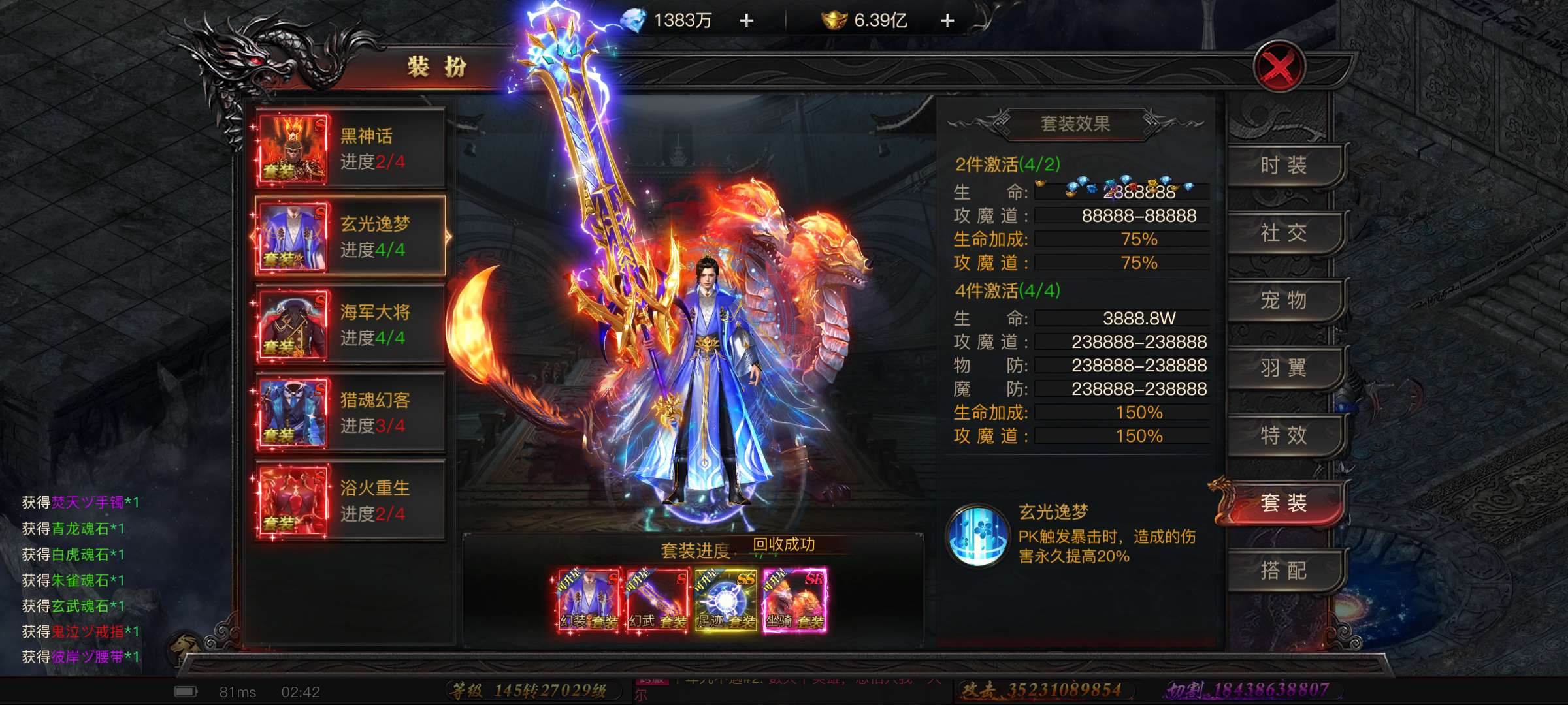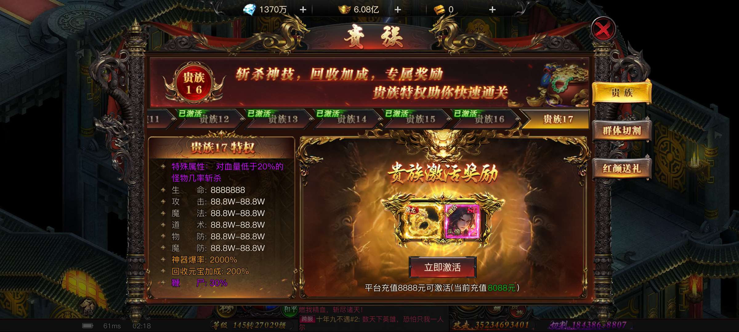 真充8088,有裁决和和火凤坐骑,新服第39天(截止11.22日),区服第一法师,没时间玩了,转手