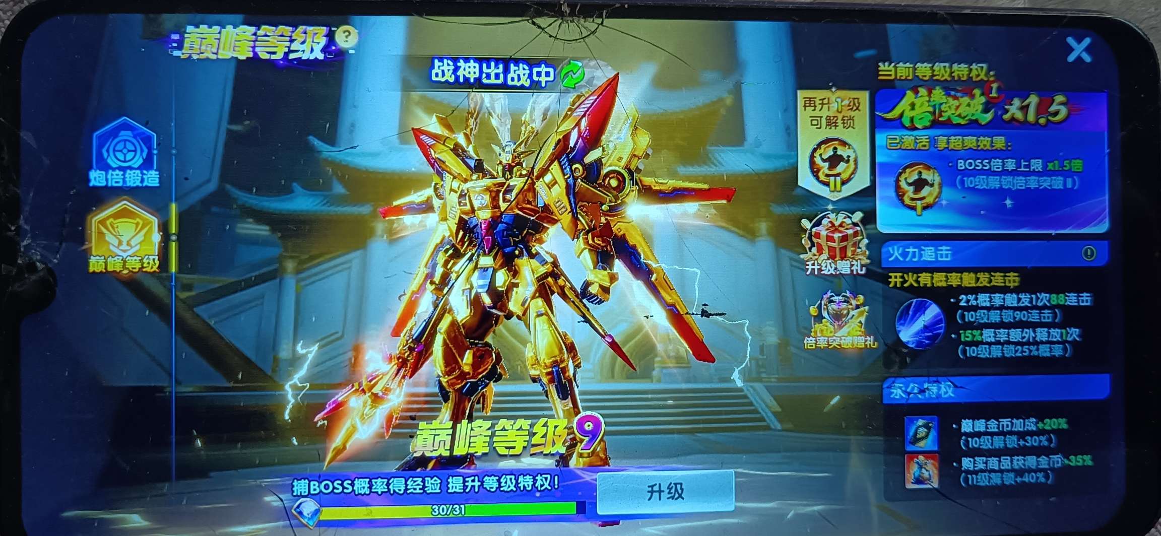无绑v1 6000炮 13900万亿 狂暴3100+ 巅峰9 临时战神 道具充足