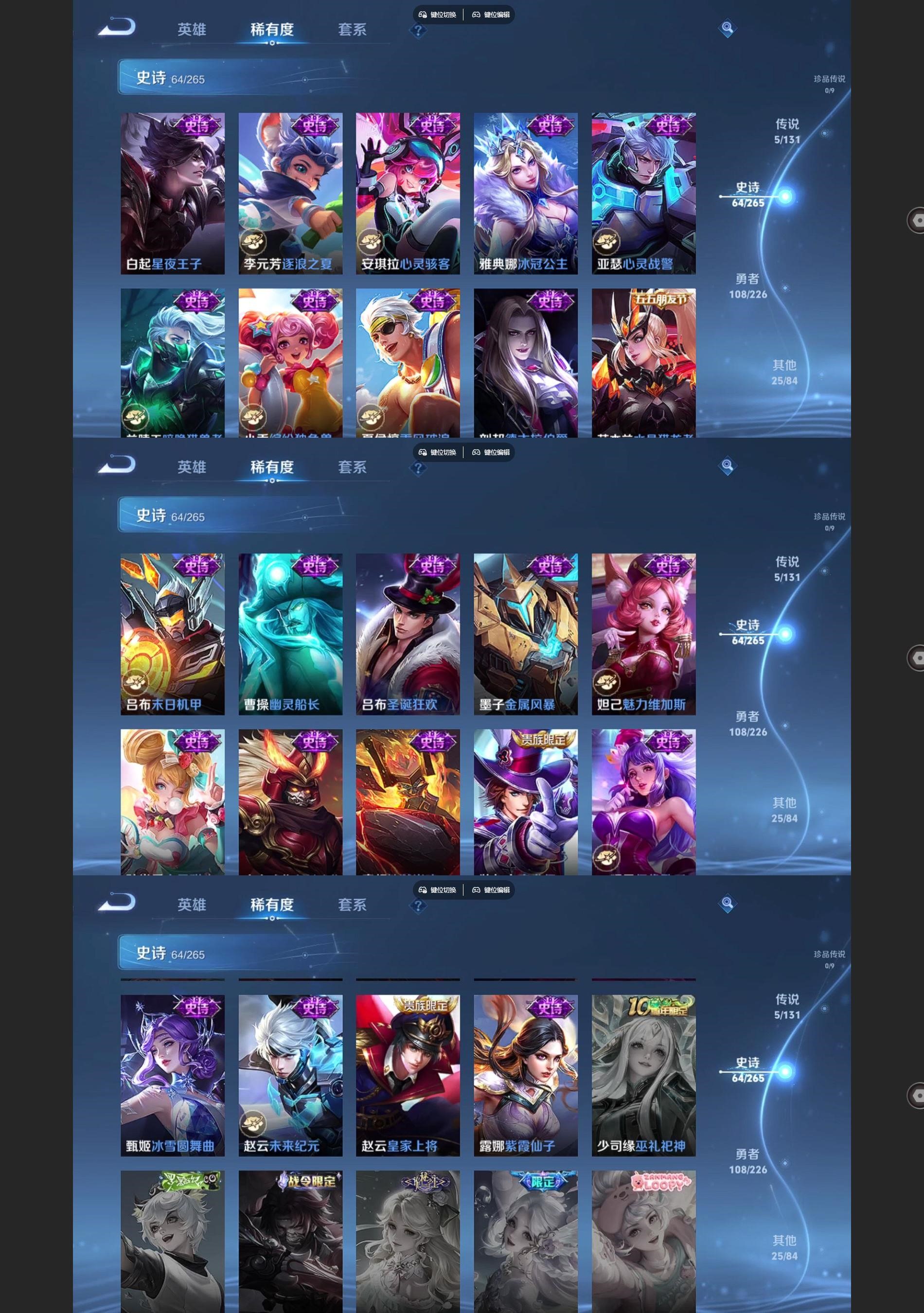 [王者荣耀]V75传说64史诗202皮肤非凡王者