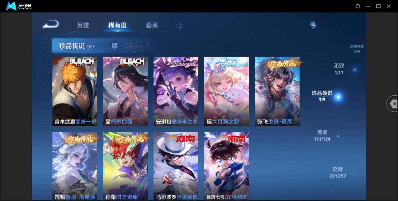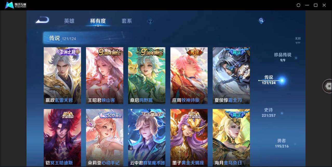 可二次-贵10-126英雄-633皮肤-3典藏(武则天)-1无双-9珍品传说-121传说-221史诗-288限定-5星元-44按键-297戳戳