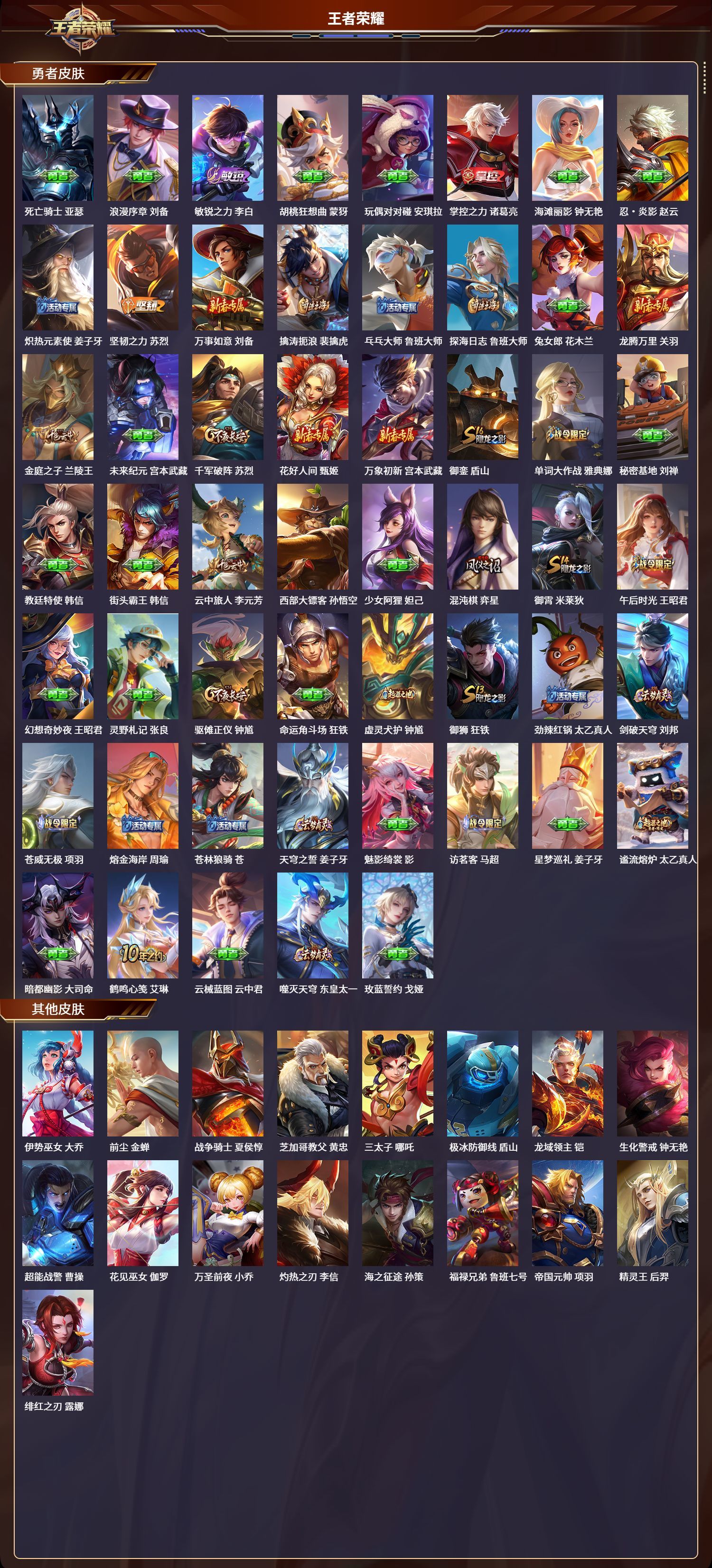 安卓QQ/至尊星耀/246皮肤/127英雄/1典藏/0珍品无双/1无双/0珍品传说/8传说/71史诗