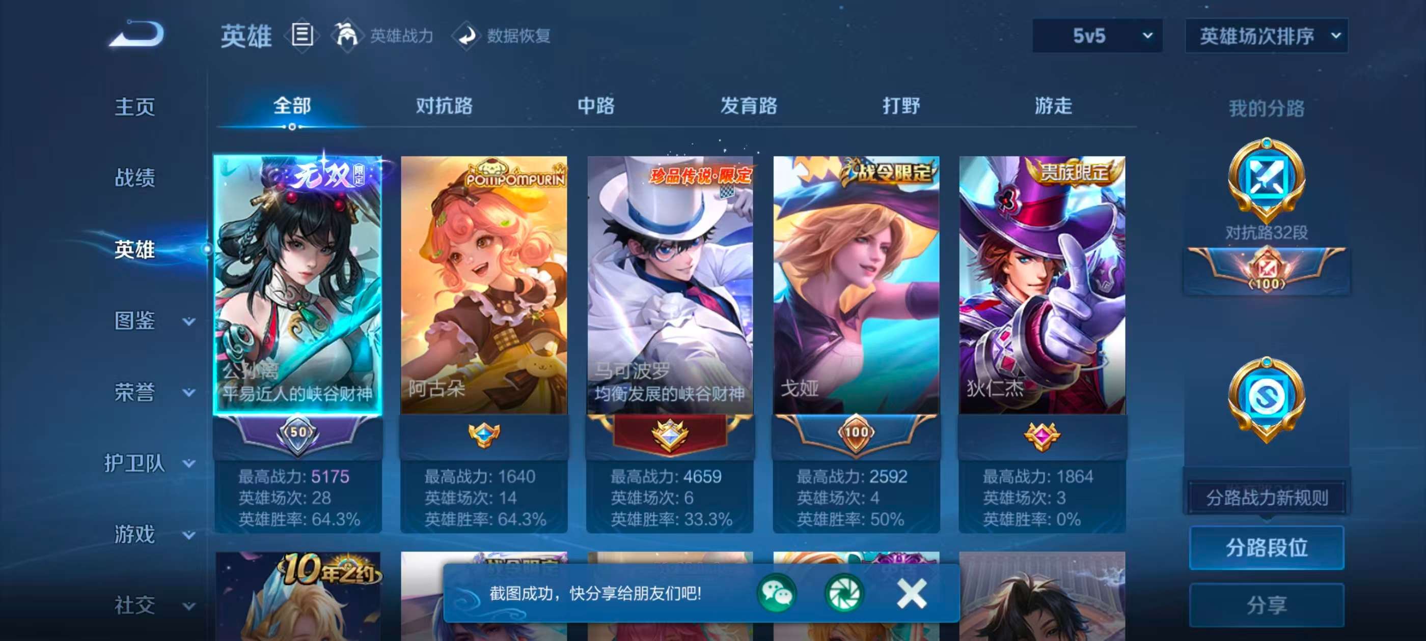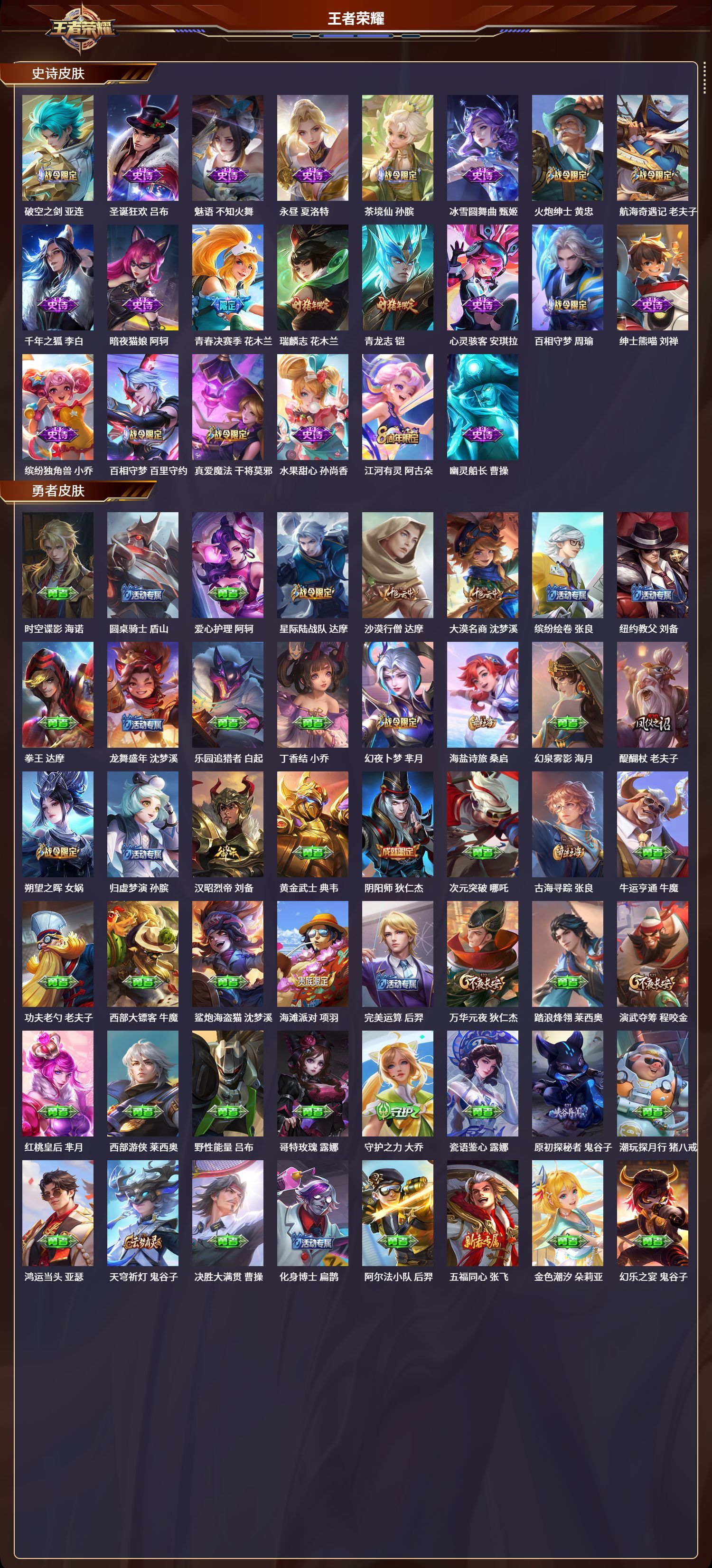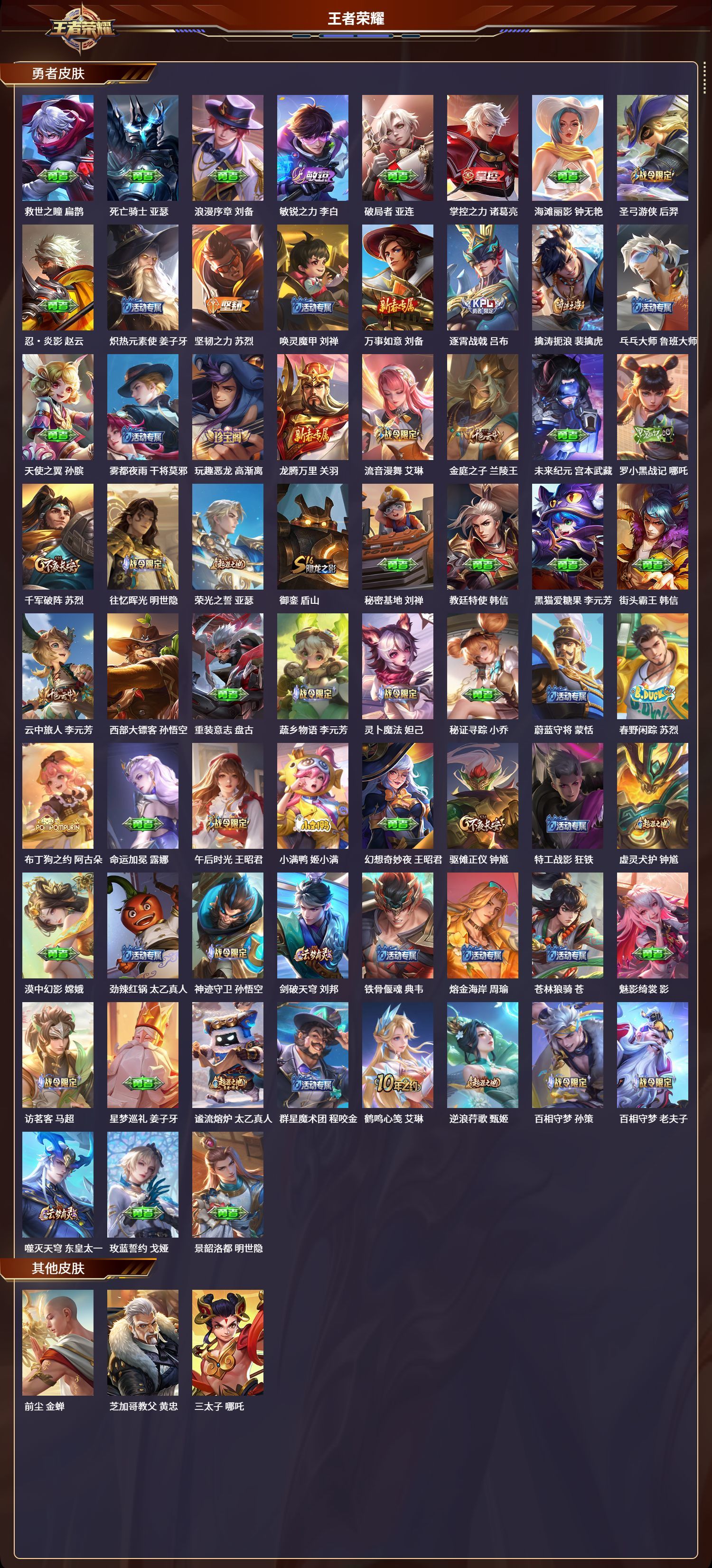 安卓微/至尊星耀/247皮肤/127英雄/2典藏/0珍品无双/1无双/1珍品传说/15传说/73史
