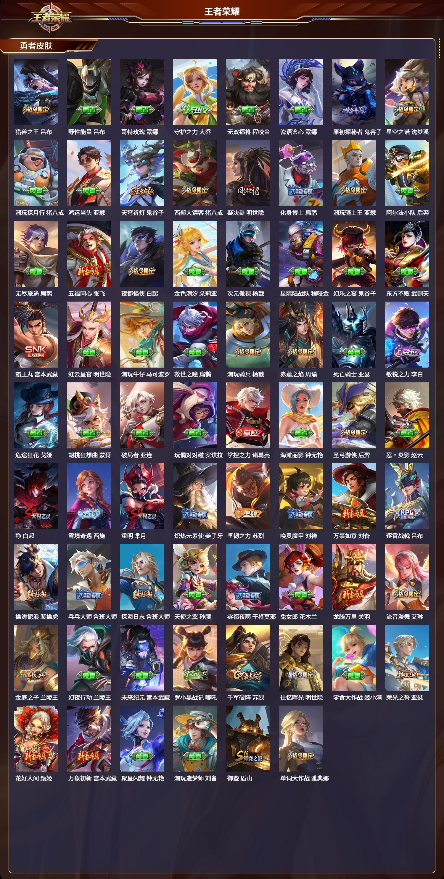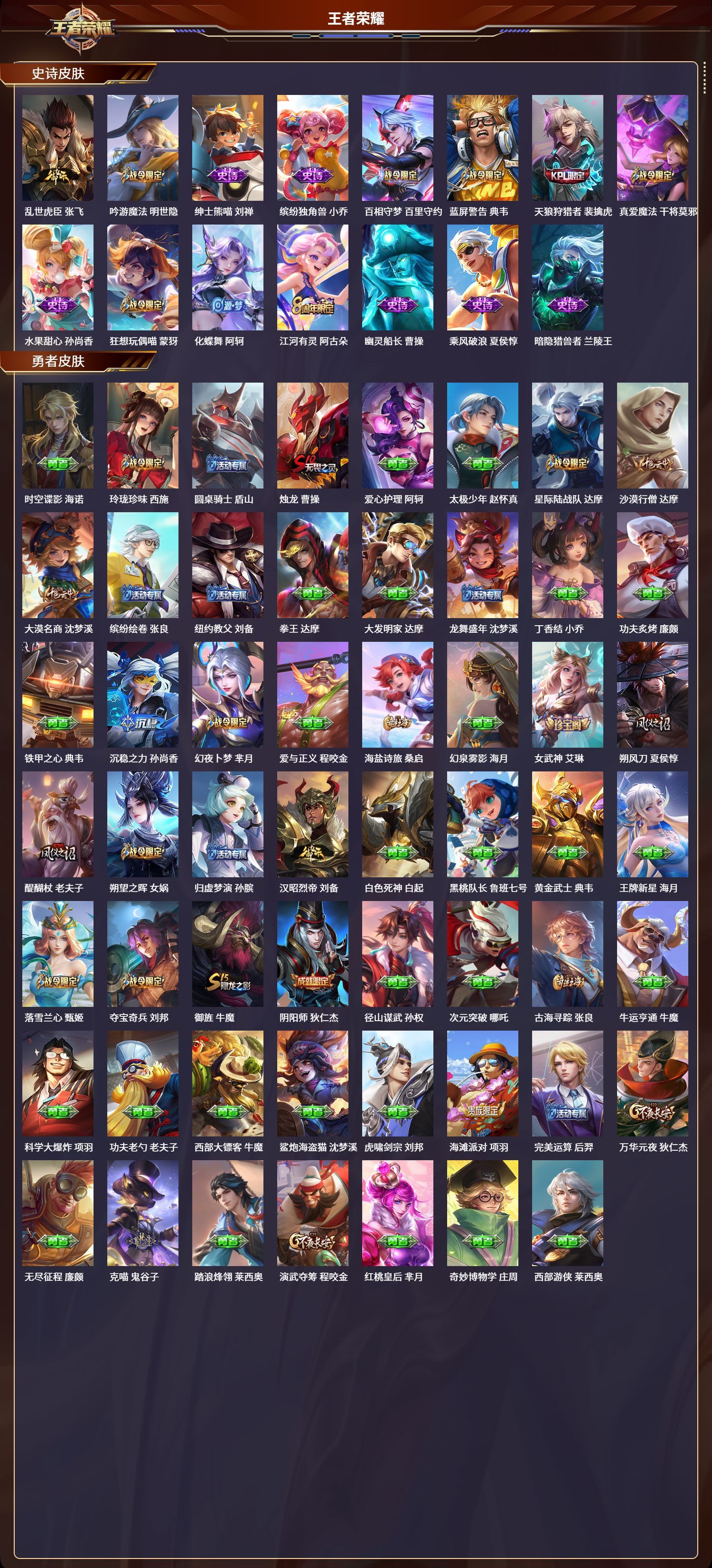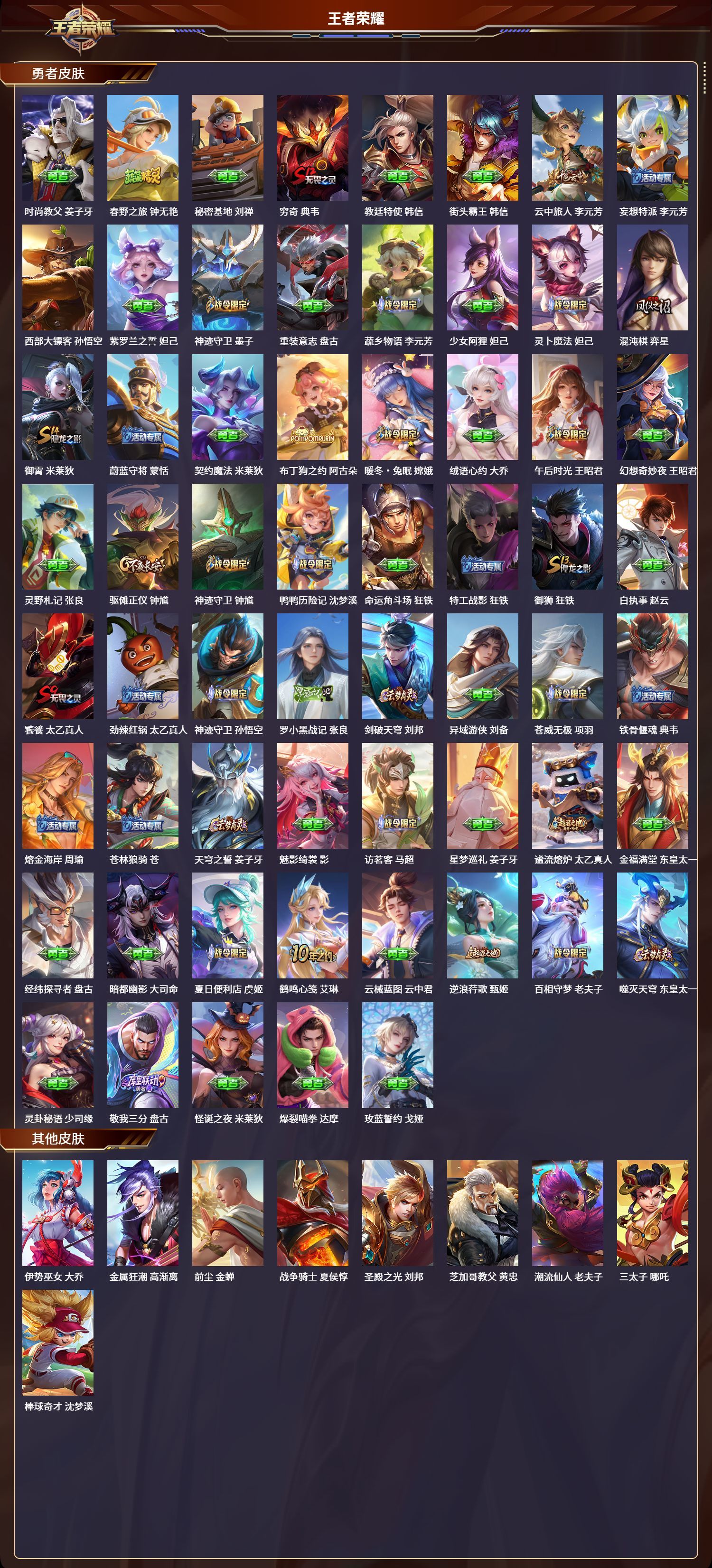 苹果QQ/绝世王者/421皮肤/127英雄/3典藏/0珍品无双/0无双/1珍品传说/19传说/132