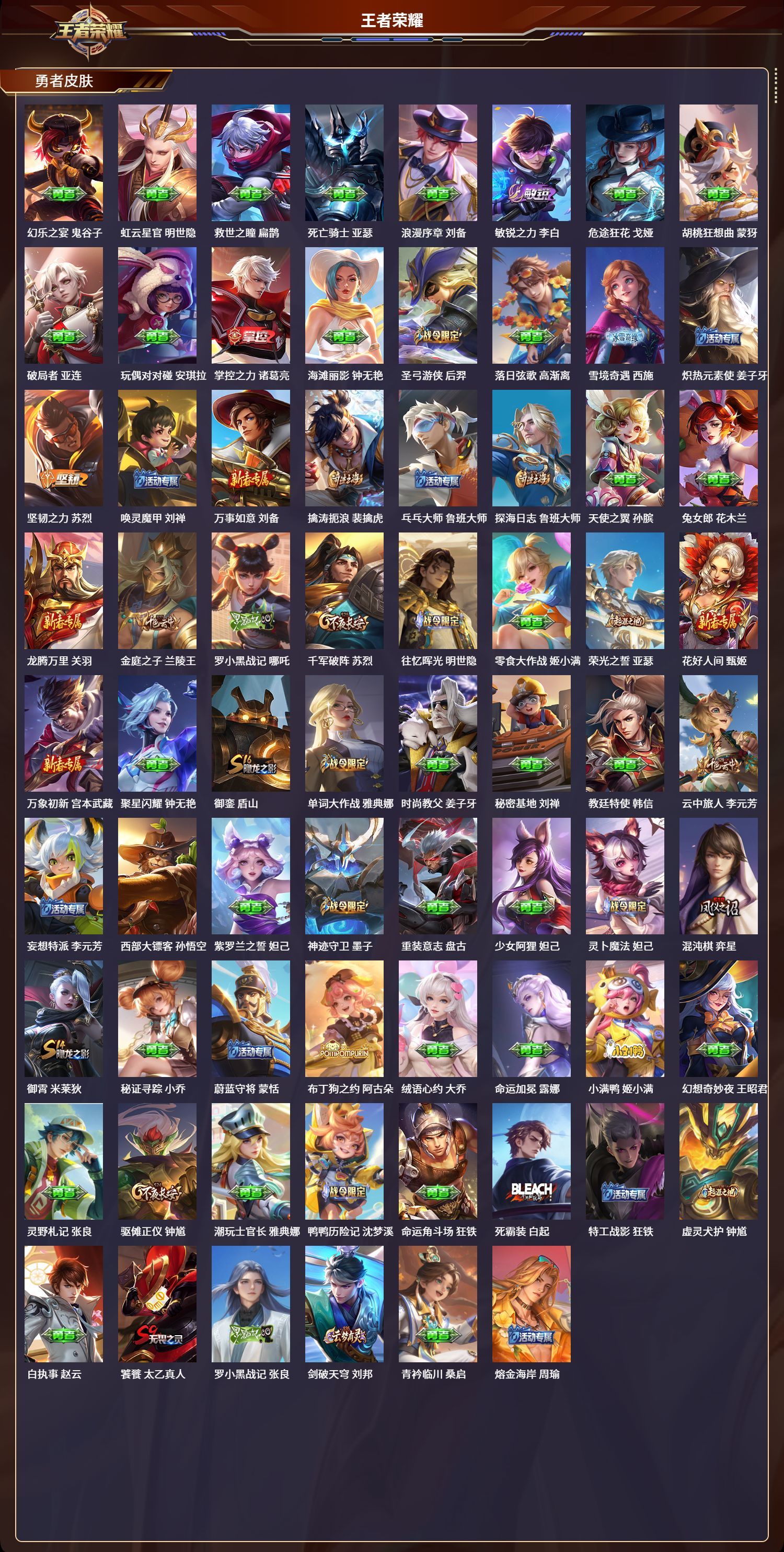 苹果QQ/永恒钻石/342皮肤/127英雄/2典藏/1珍品无双/2无双/2珍品传说/32传说/112