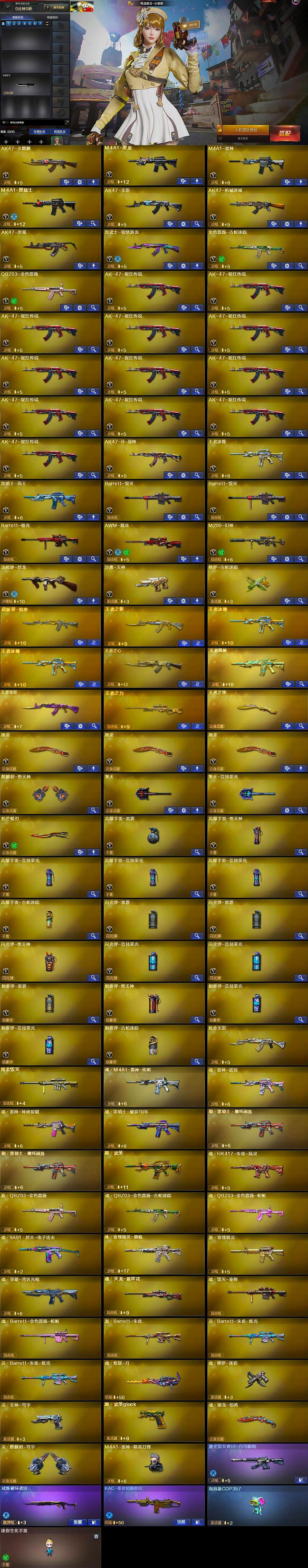 【热门武器】:QBZ03-金色蔷薇,M200-幻神,金色蔷薇-古蛇迷踪,修罗-古蛇迷踪,M4A1-黑骑士,汤姆逊-烈龙,降世魔童,炽芒蝶刃