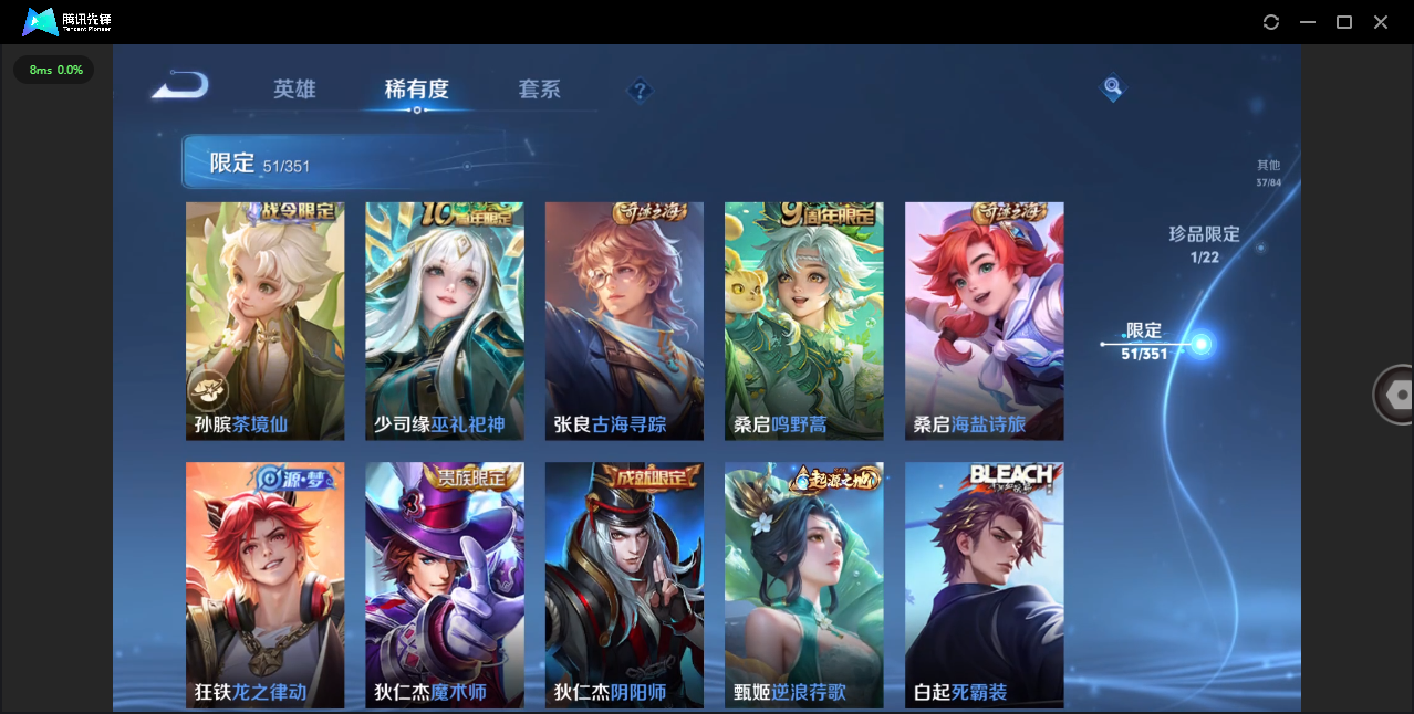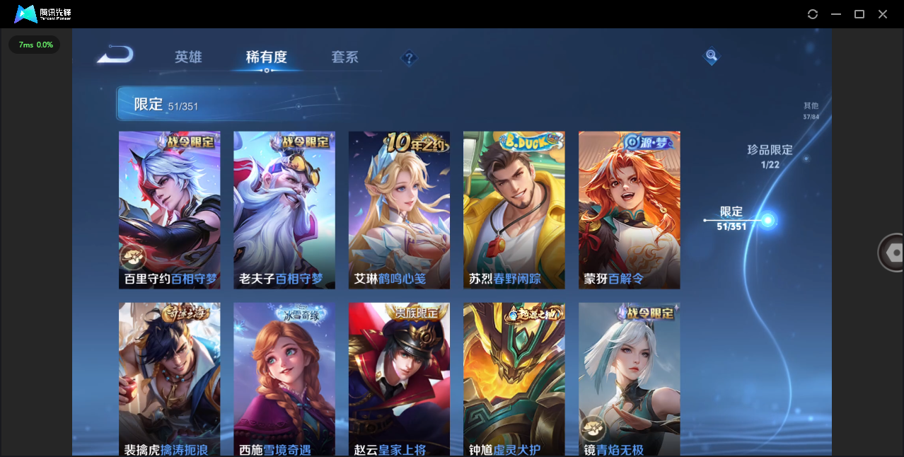 可二次-贵7-126英雄-168皮肤-1典藏-1珍品-9传说