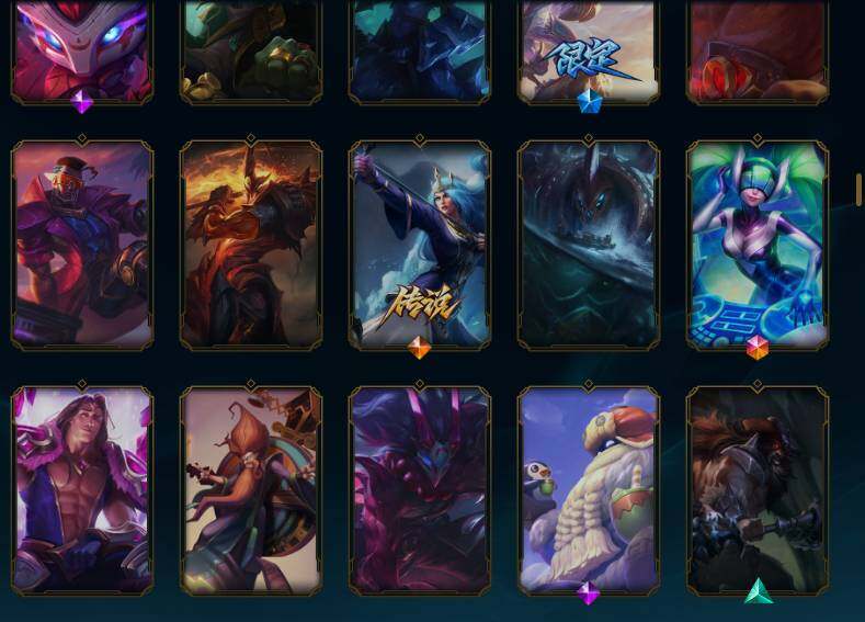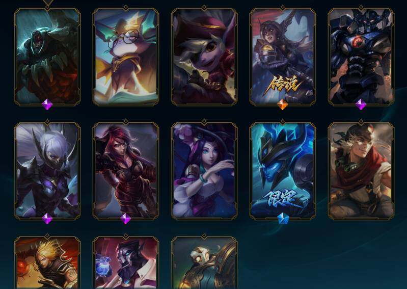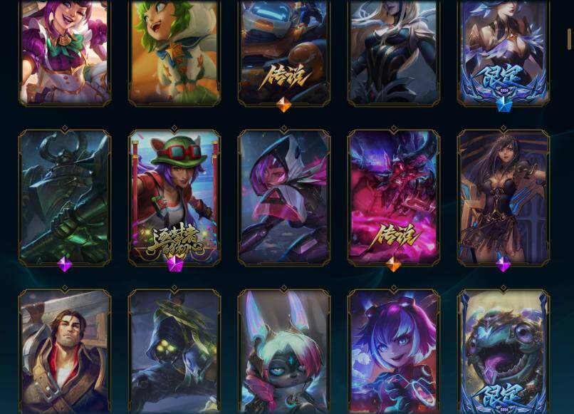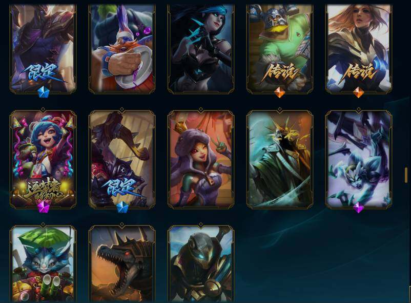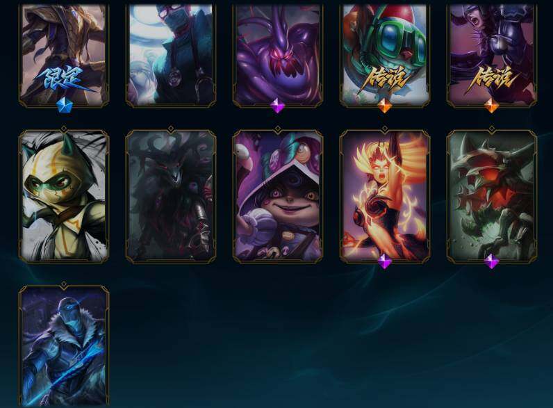 170英雄/165皮肤/1终极/4神话/23限定/2臻彩/81炫彩/19传说/45史诗/铂金/