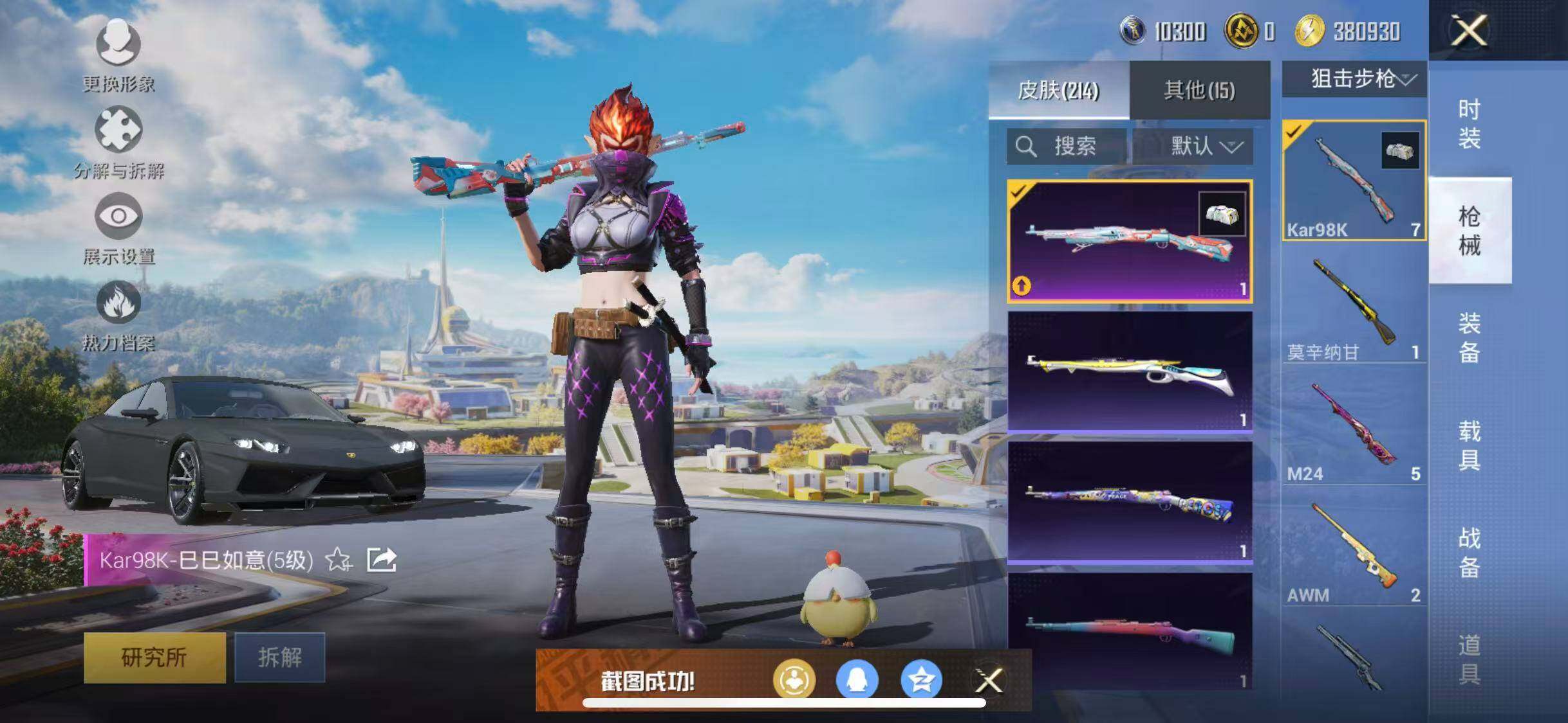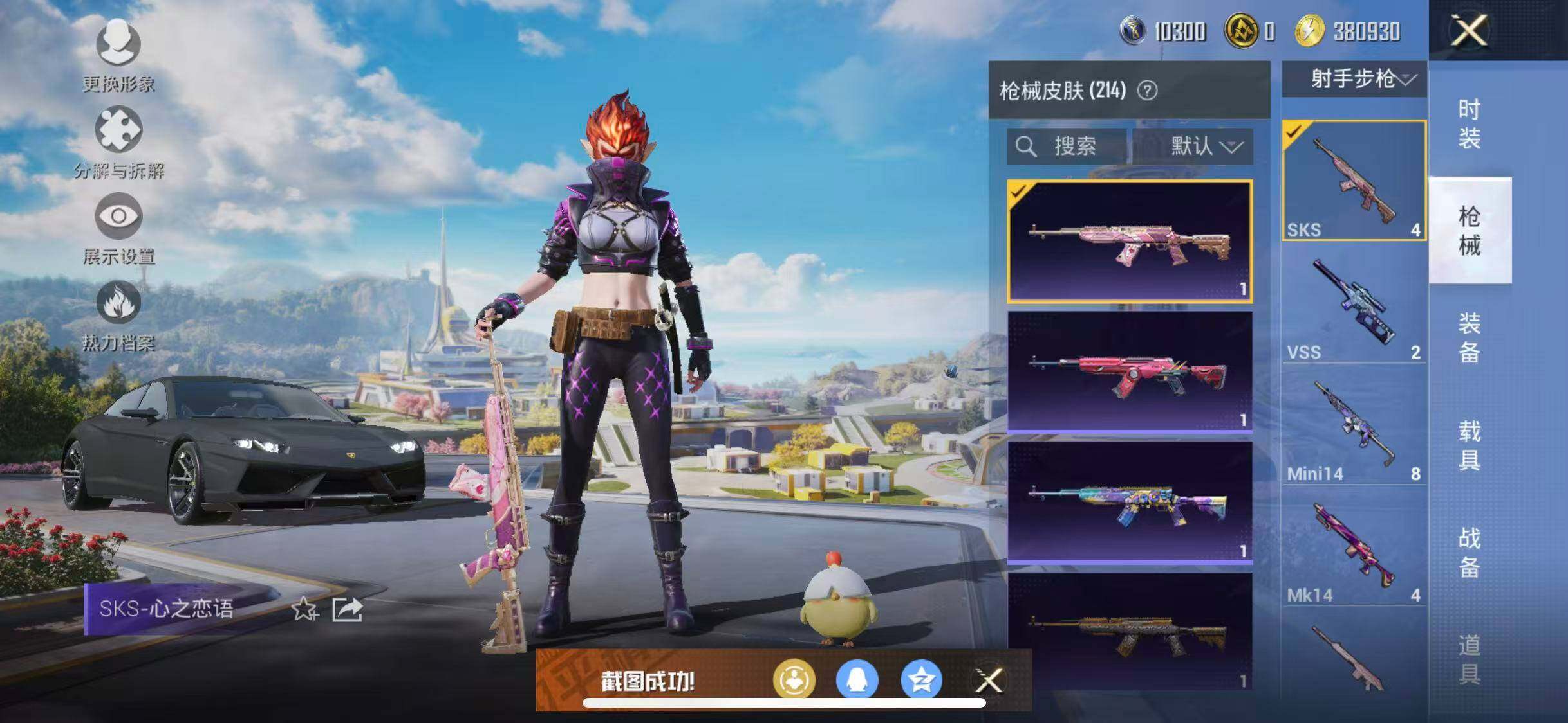 苹果 手Q-14粉装-5特效枪-1载具-1粉色飞行器-72610热力值-13王牌印记-167套装-214枪皮