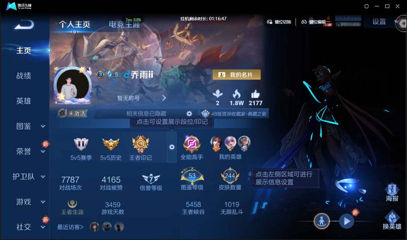【W3268】【亮点:7.7k场次-鸣剑曳影-满铭文】营地ID:1866213357【热门:启明星使、深海之息、无双飞将、一念神魔】安卓q-无二次-贵8-125英雄-244皮肤-1典藏-1星元-10传说-78限定-4按键-贵族积分5.2w