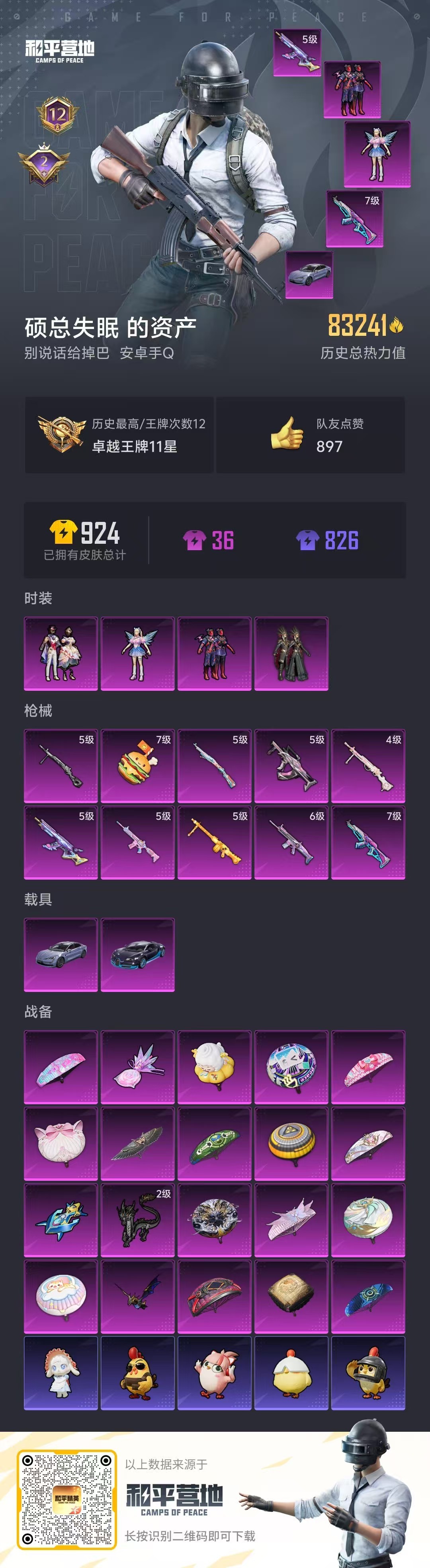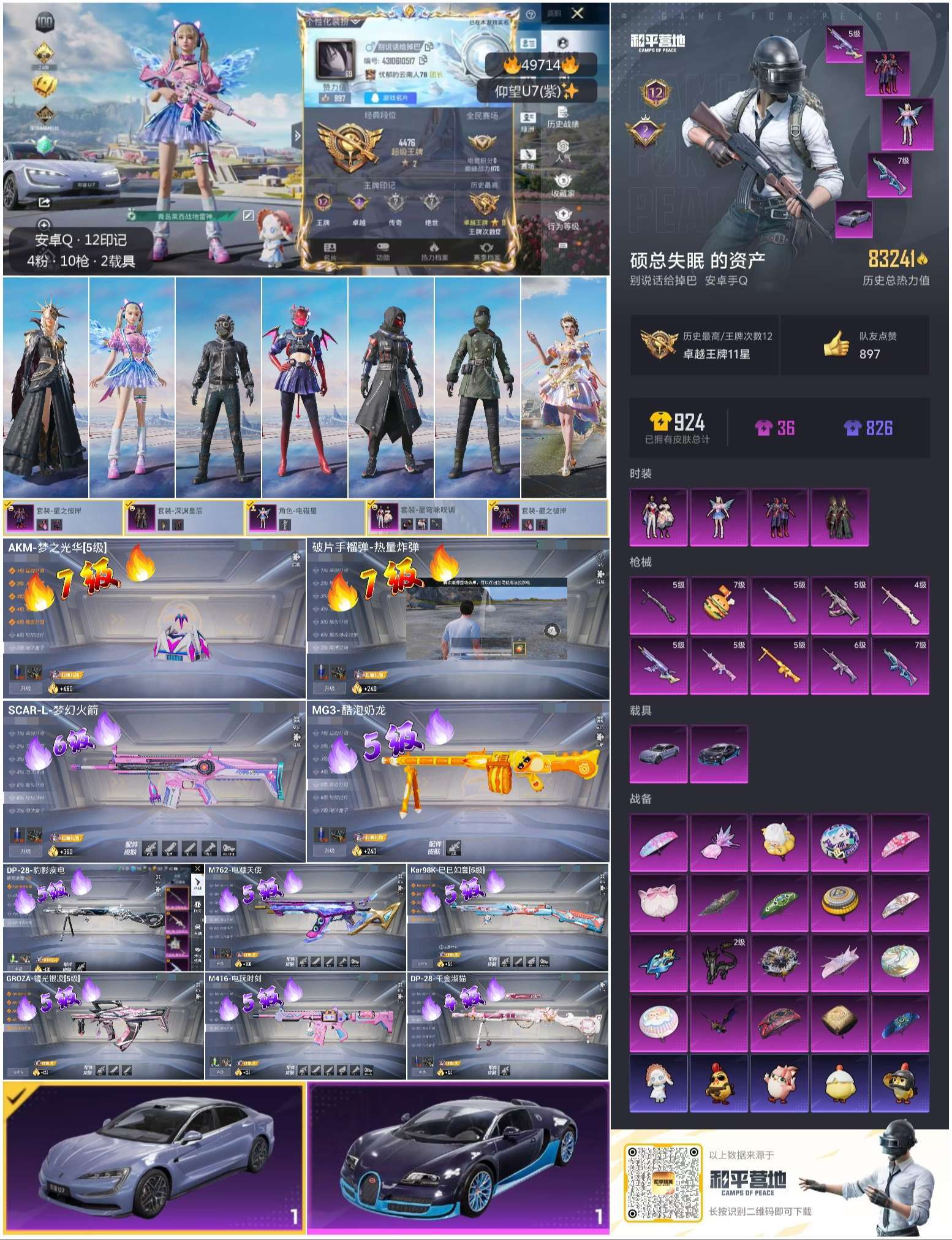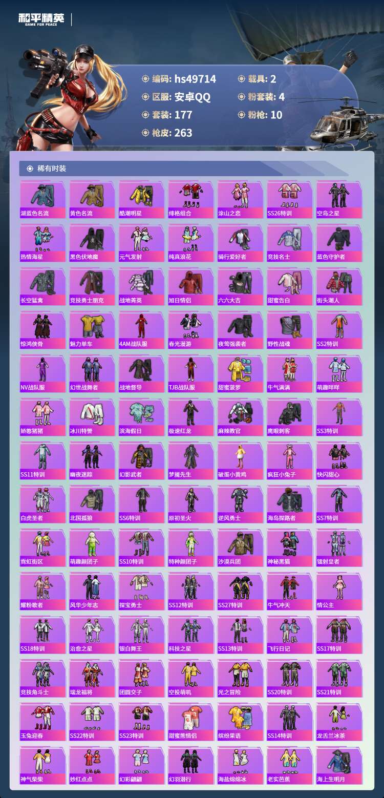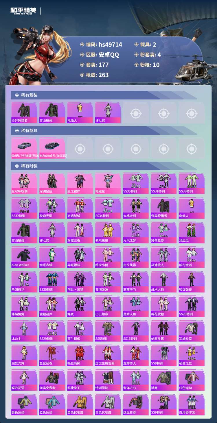 hs49714 安卓手Q-12王牌印记-4粉装-10特效枪-2载具-83241热力值-177套装-2