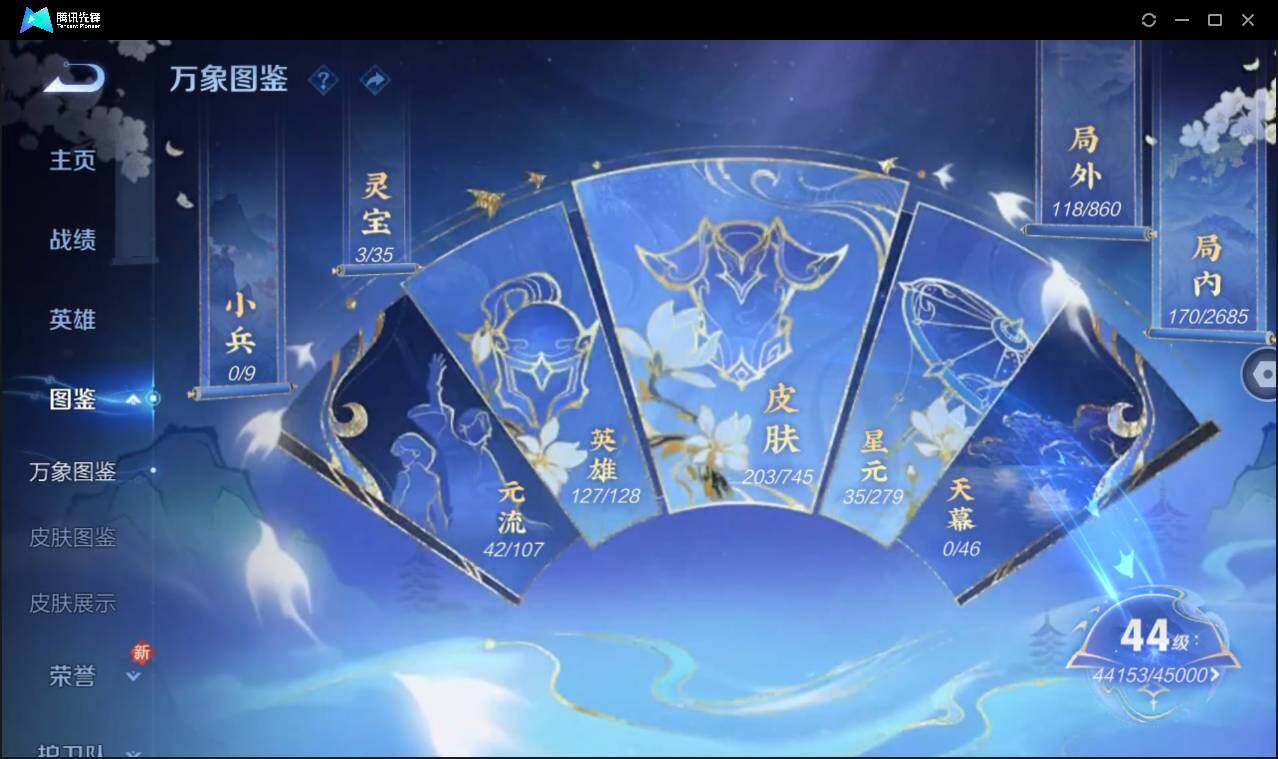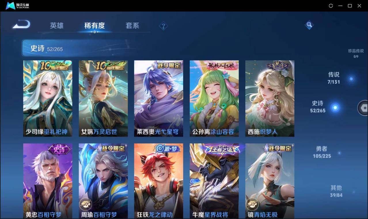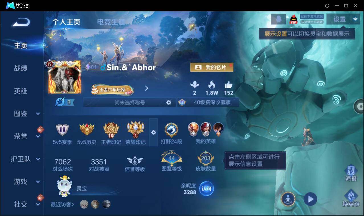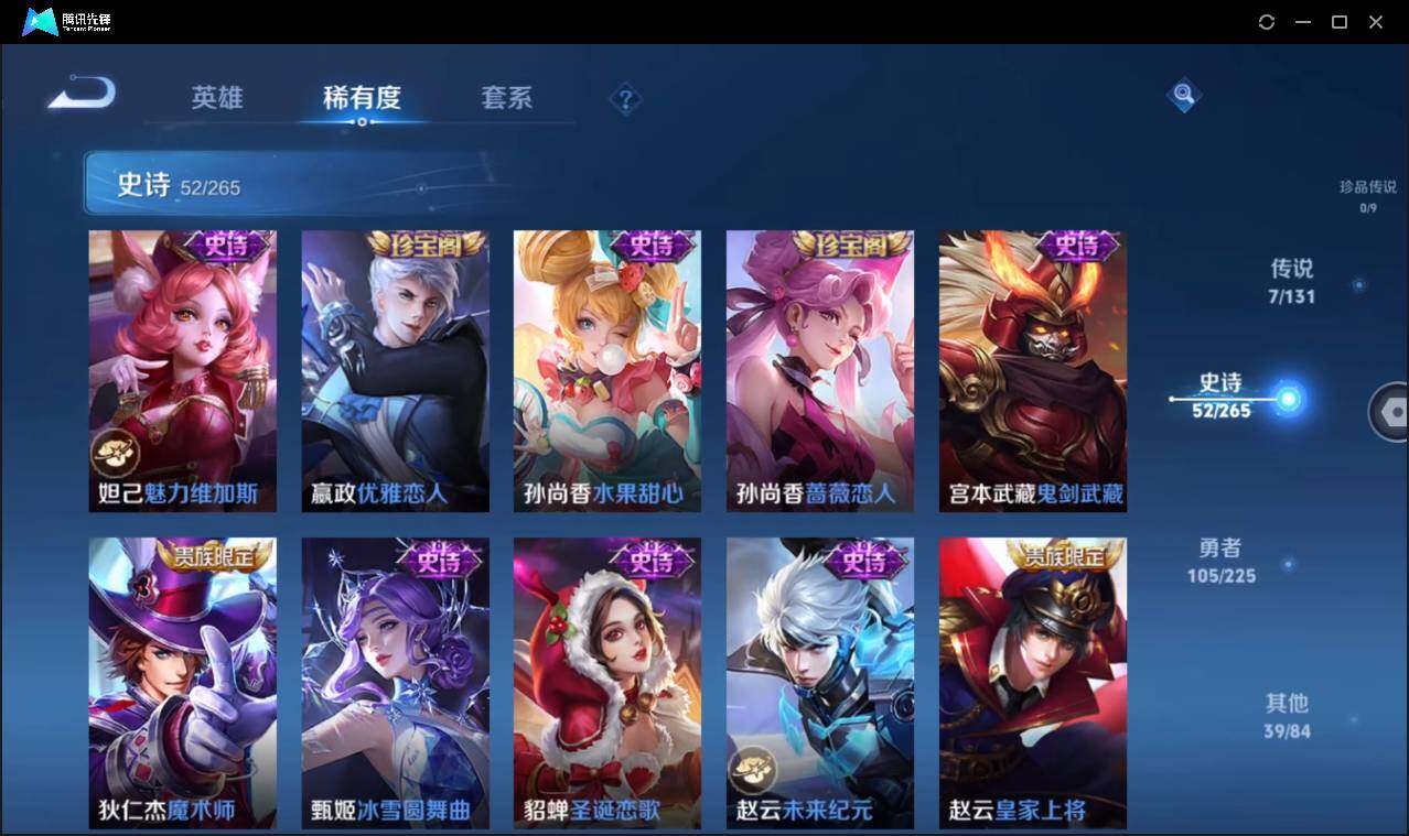 可二次-贵6-127英雄-203皮肤-1星元-7传说-52史诗-63限定-9按键-贵族积分16040