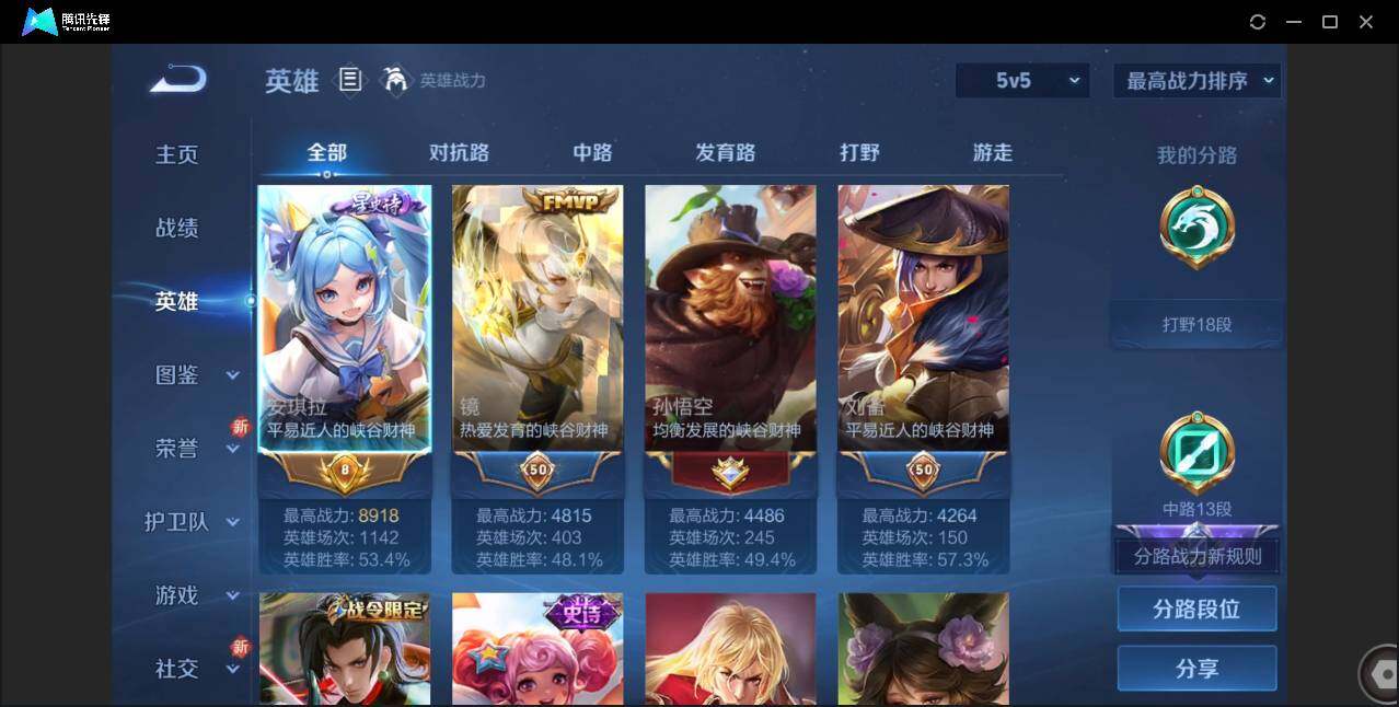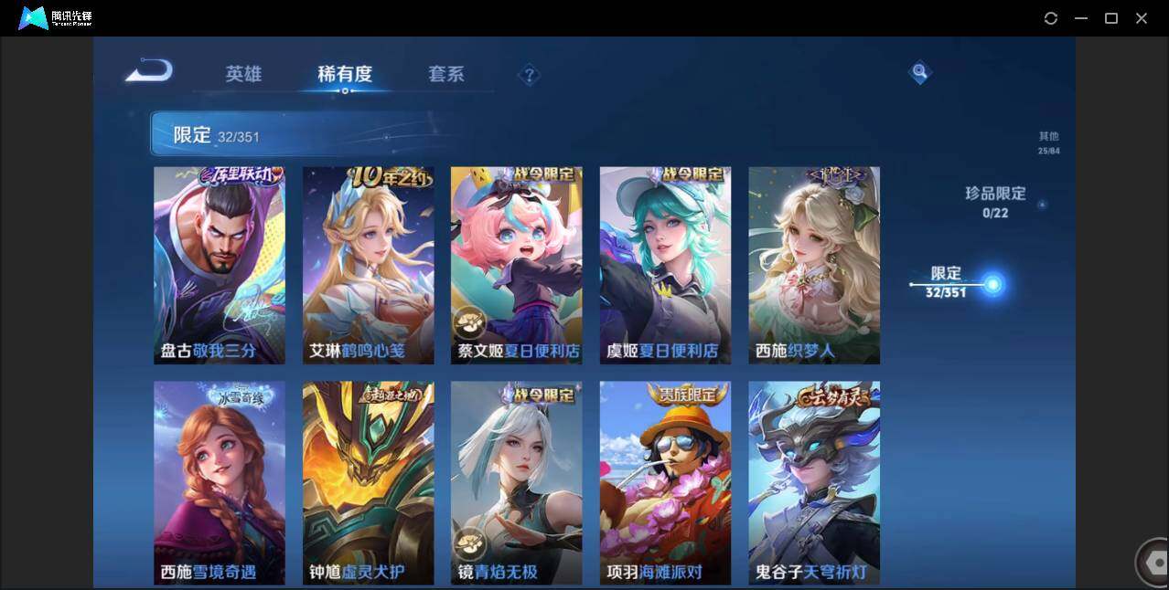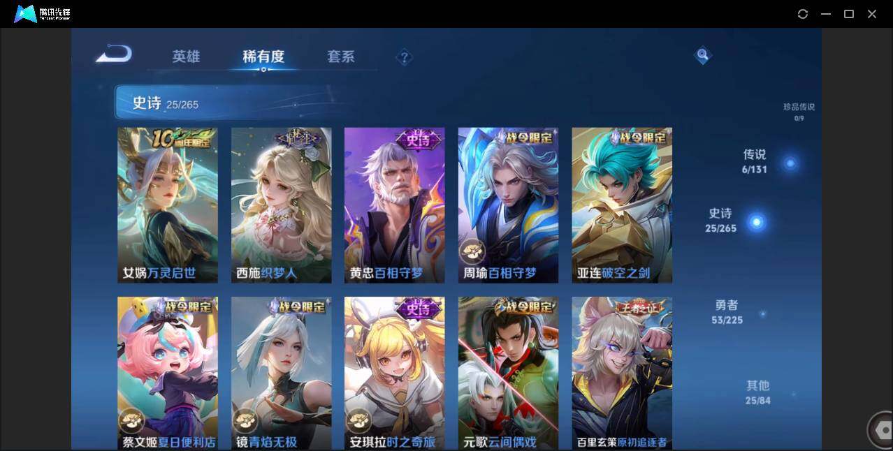可二次-贵4-123英雄-109皮肤-6传说-25史诗-32限定-2按键-380玫瑰花