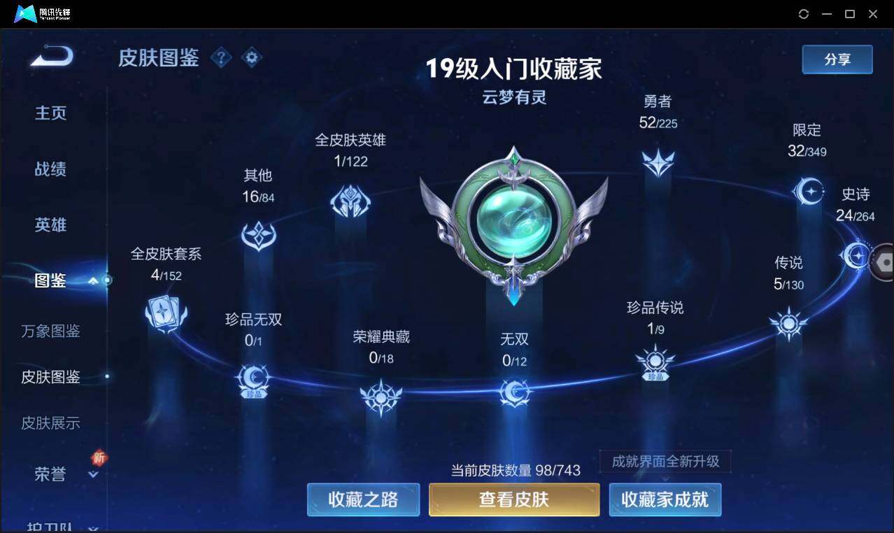 可二次-贵6-109英雄-98皮肤-1星元-1珍品传说-5传说-24史诗-32限定-6按键-贵族积分13341