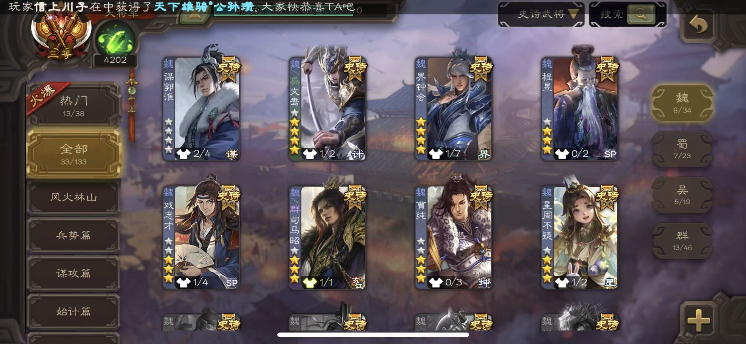 大将军34史诗动态老刘刘焉动态小鸟动态孙寒华回廊动态界钟会动态司马昭动态留赞动态界李儒裴秀界左慈白马骆驼许攸大宝三卡