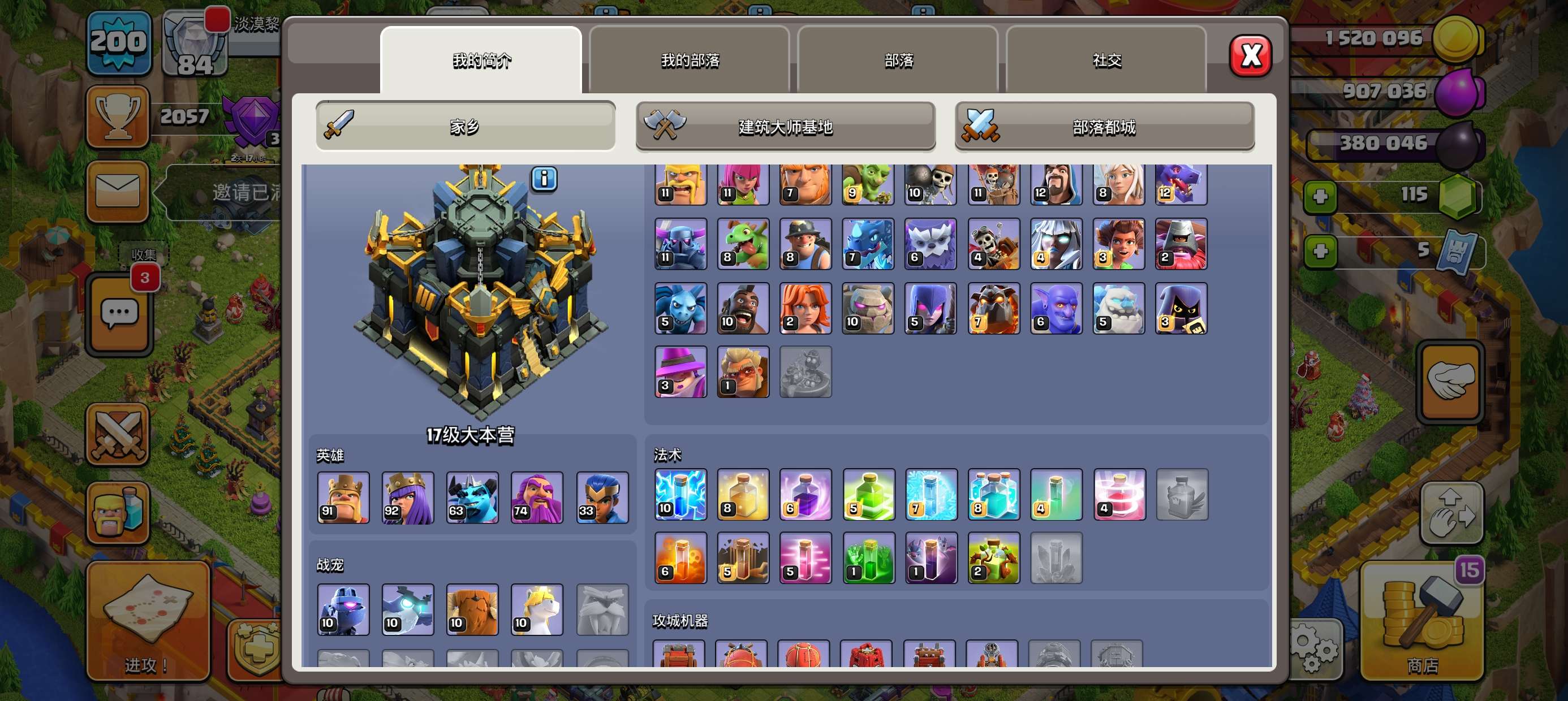部落冲突【安卓QQ】便宜处理退游了,17本中期,主要攻击建筑都升级好了