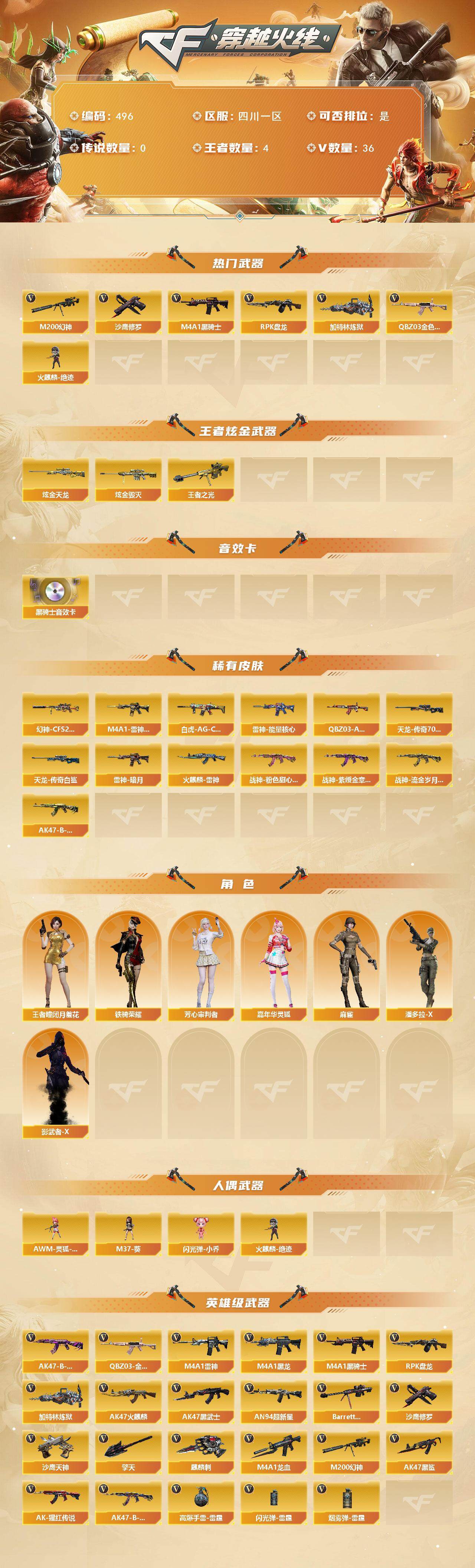 【皮肤】:幻神-CFS2022,白虎-AG-CFPLS20冠军,QBZ03-AG-CFPLS19冠军,雷神-暗月,雷神-能量核心,M4A1-雷神-CFS