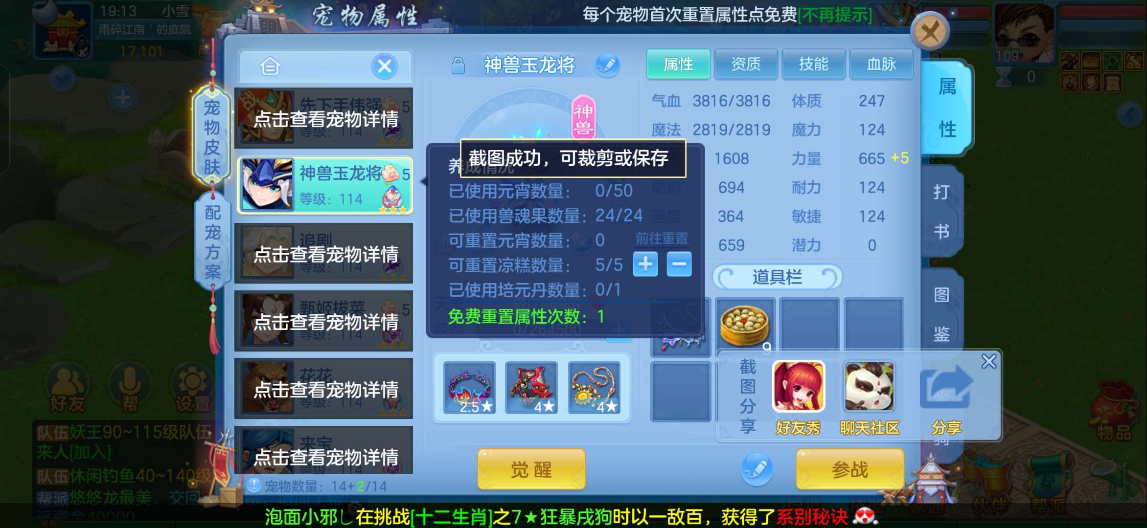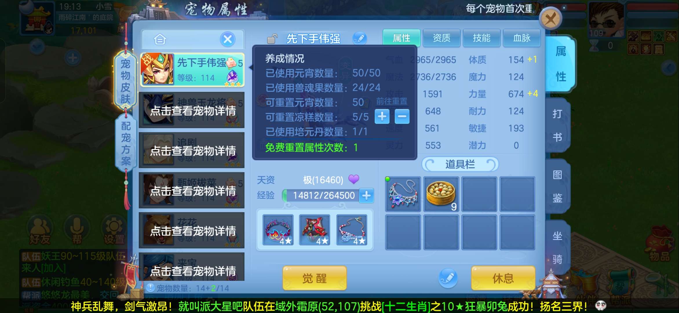 幻唐志:逍遥外传(神武4)【安卓官方】109普陀16个满兽魂,6个专属血脉。13满段,1强化玉龙,1法蛇。上手就能玩2980邮箱,无双重。