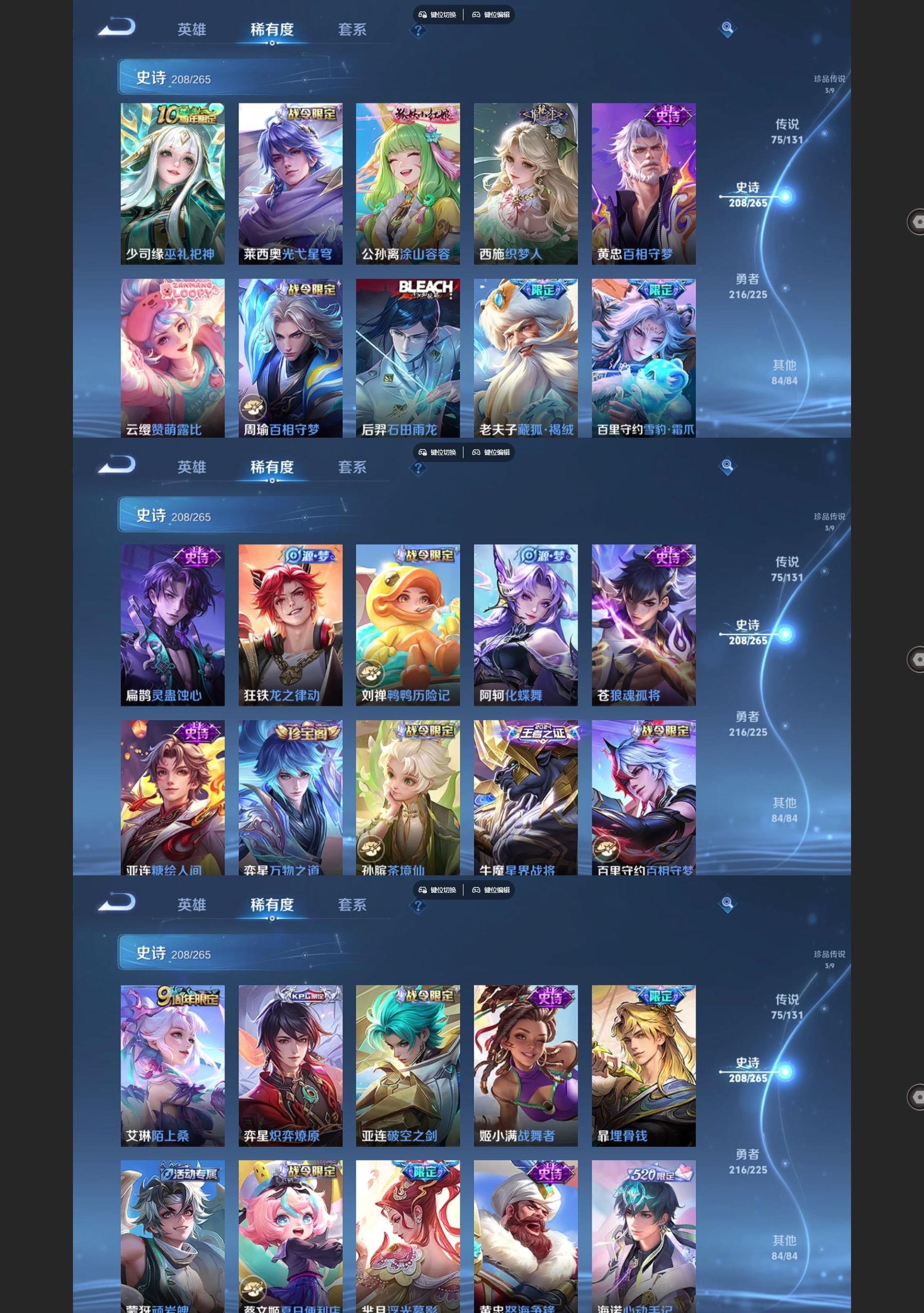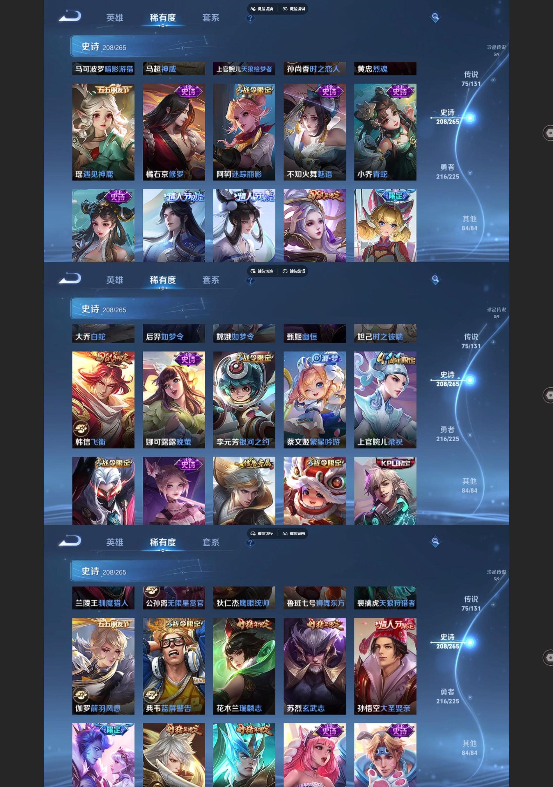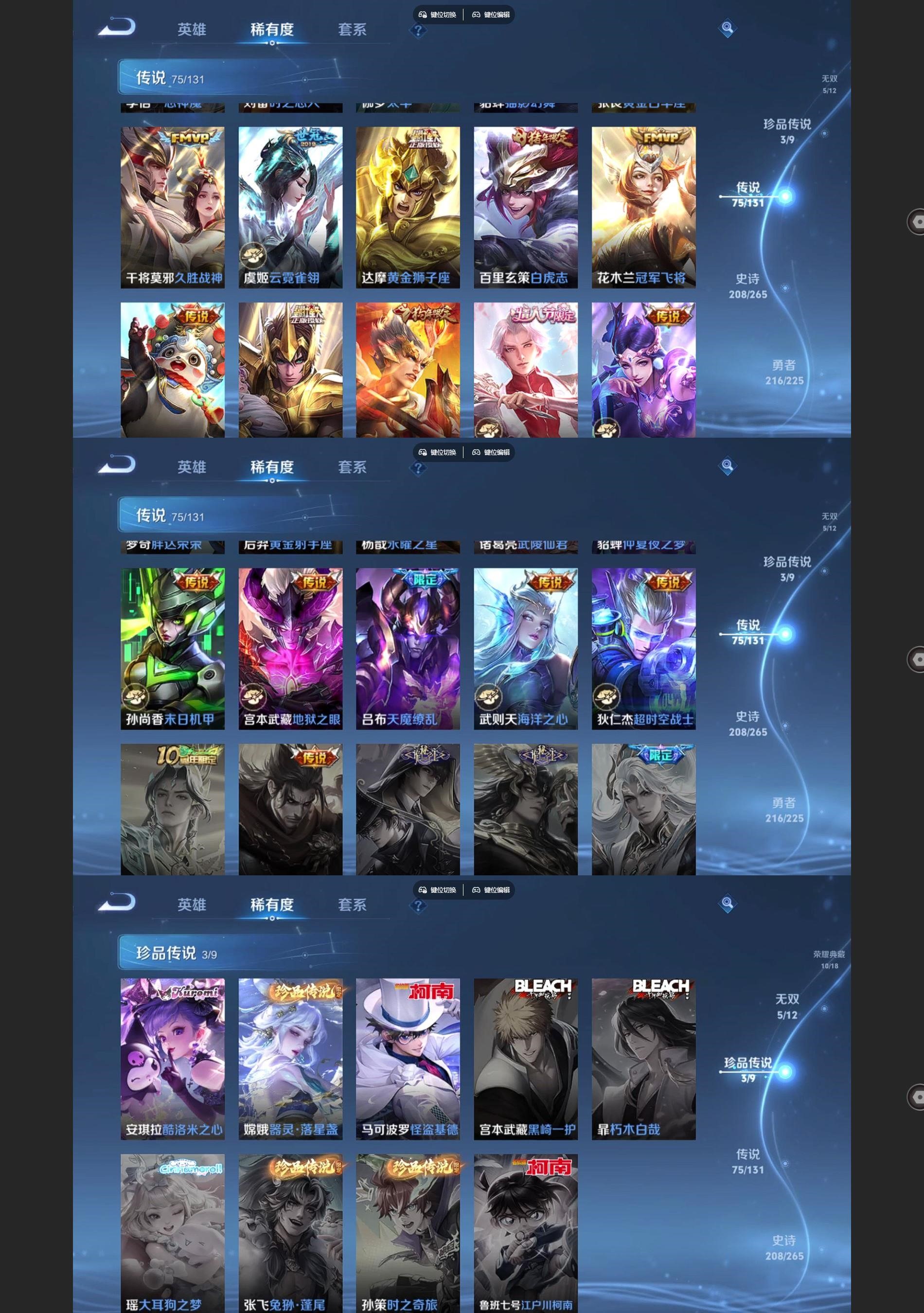 [王者荣耀]V1010典藏5无双75传说208史诗601皮肤最强王者