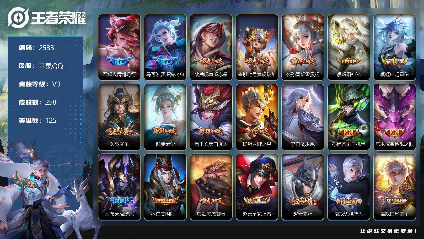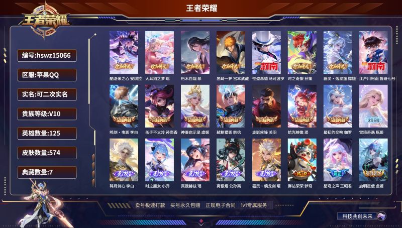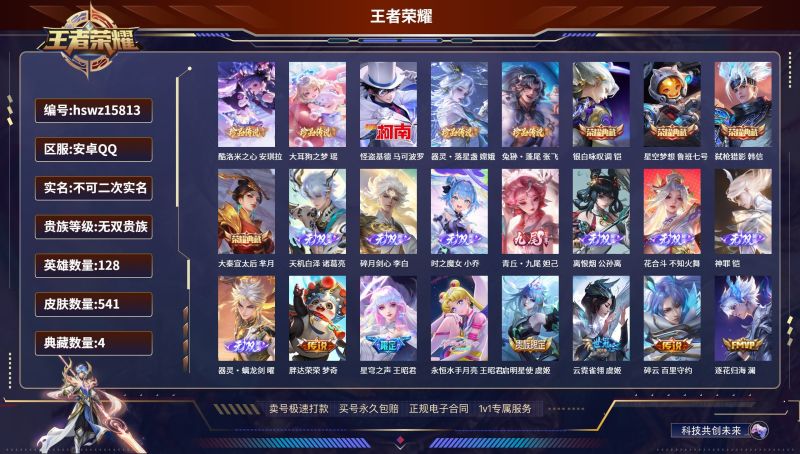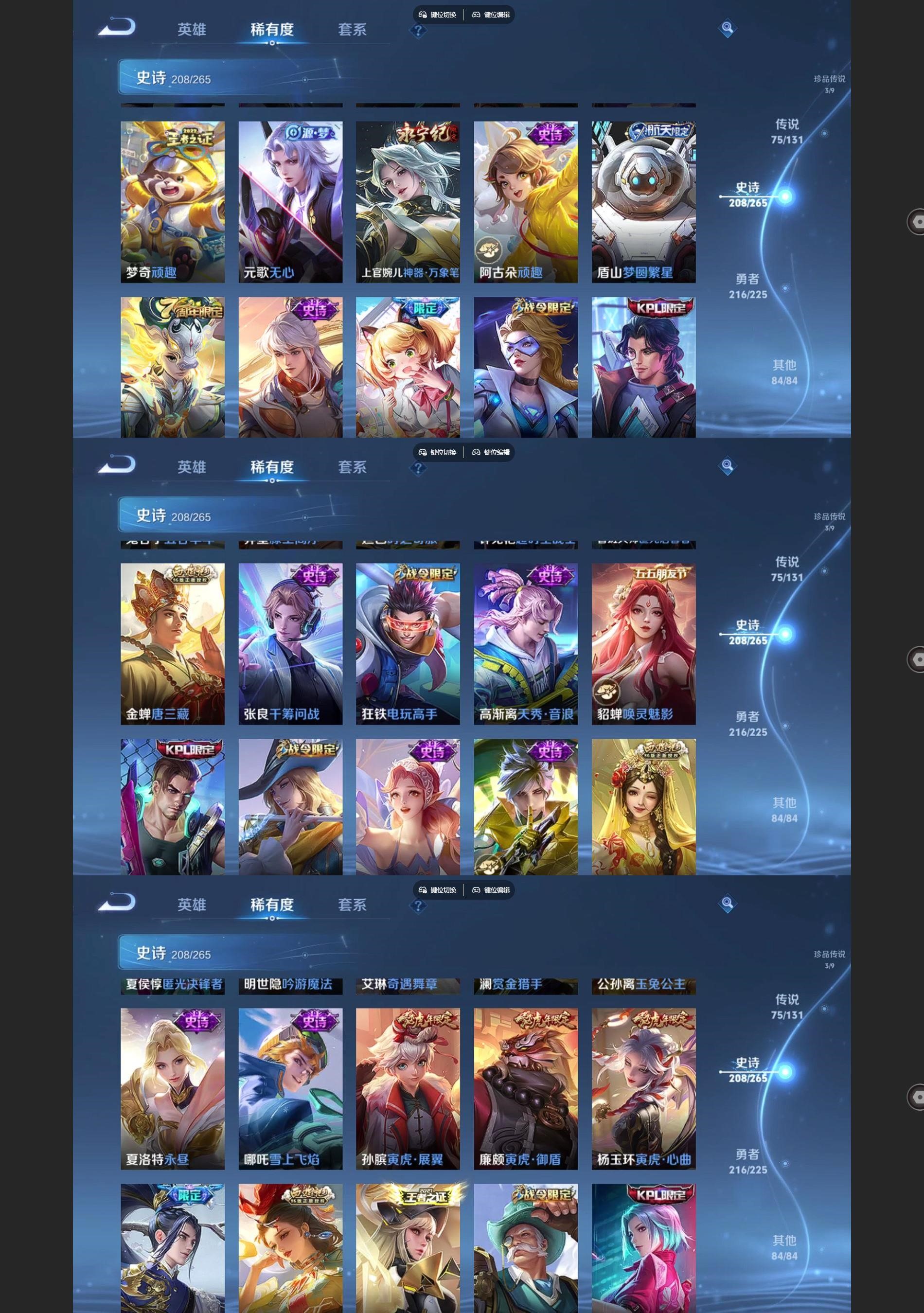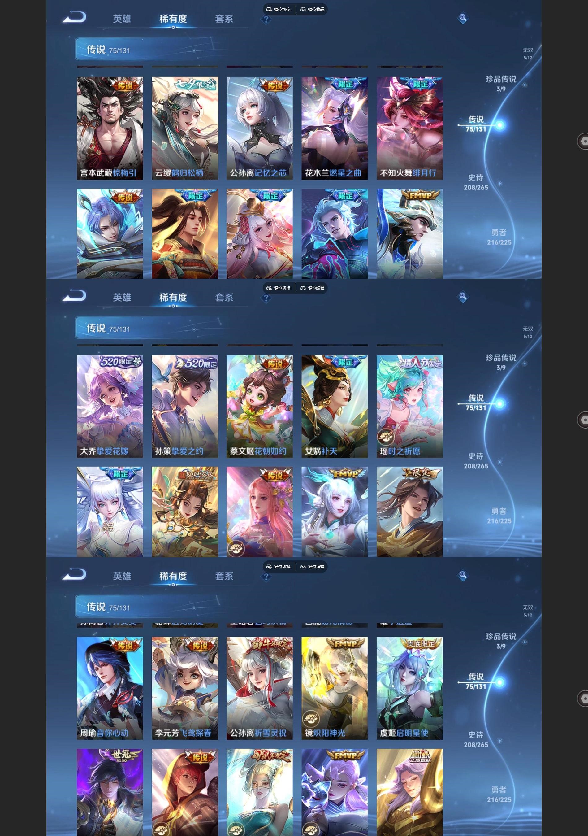 [王者荣耀]V1010典藏5无双75传说208史诗601皮肤最强王者