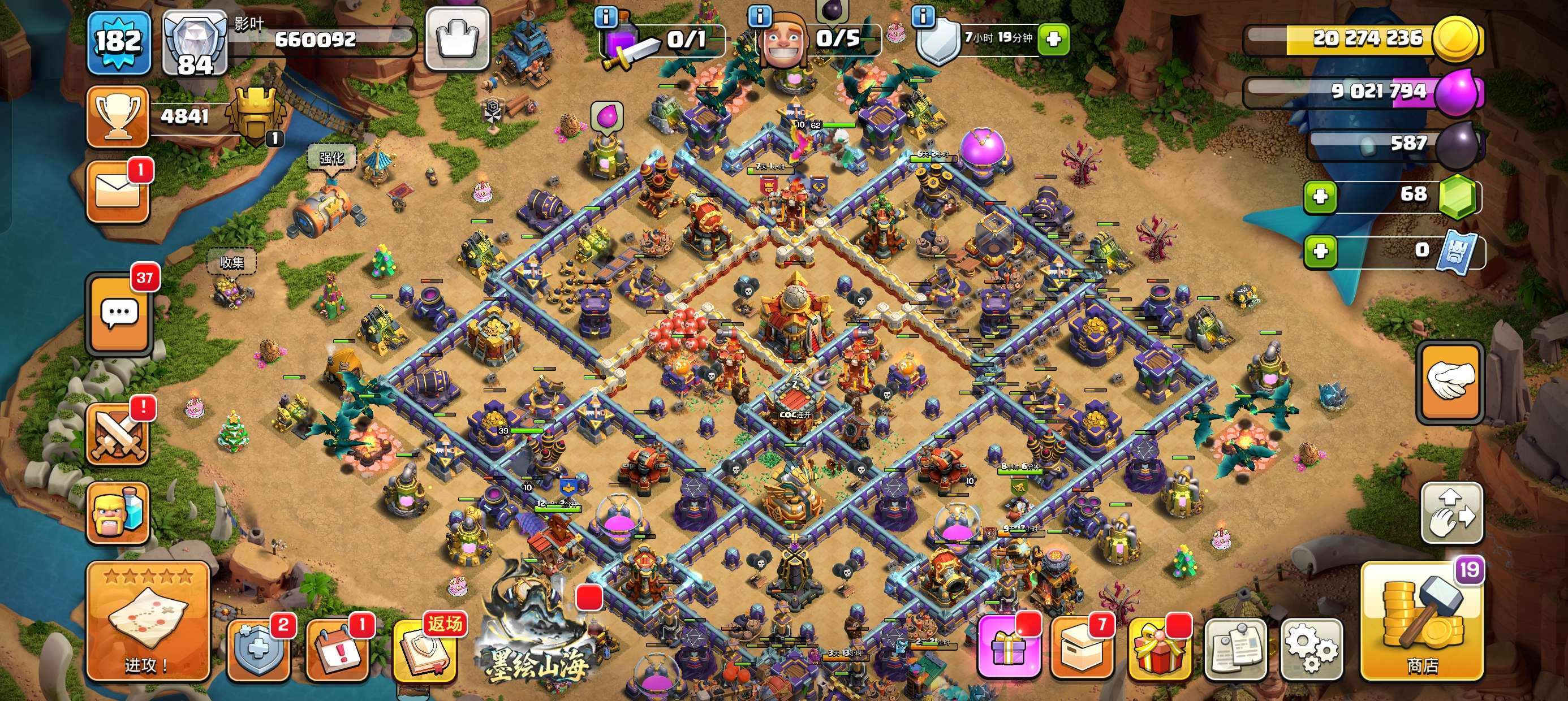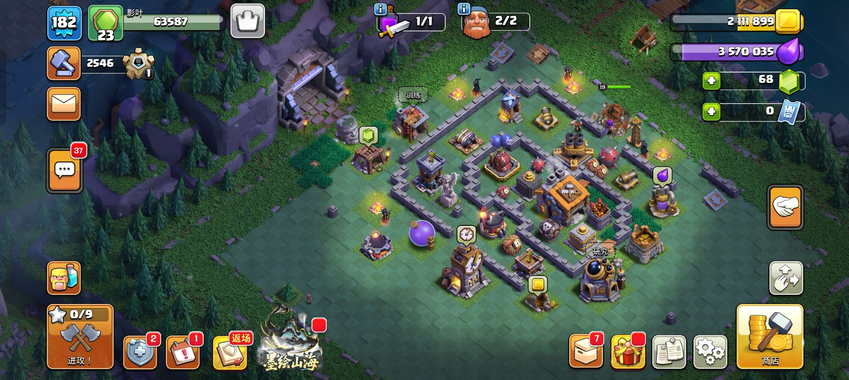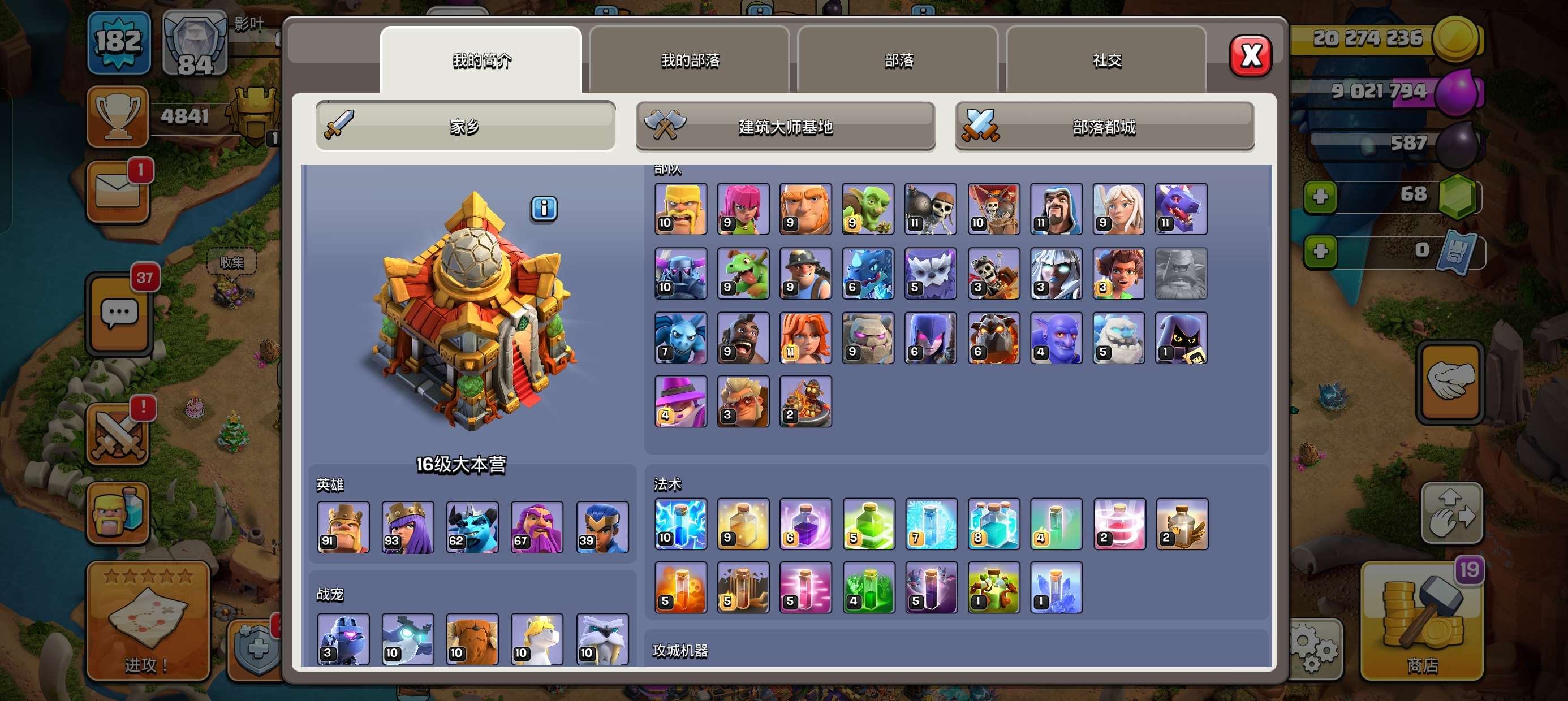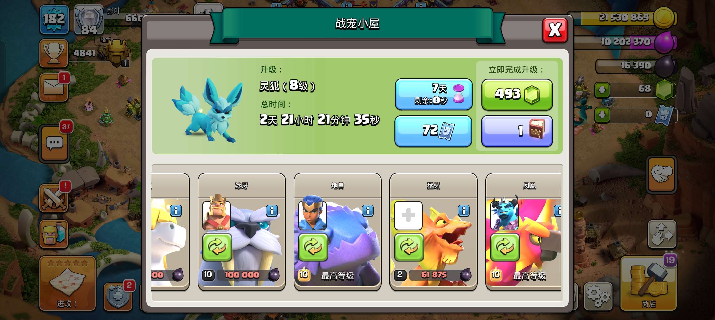 部落冲突【苹果QQ】快16本满房了宠物王的技能满级都有可以打