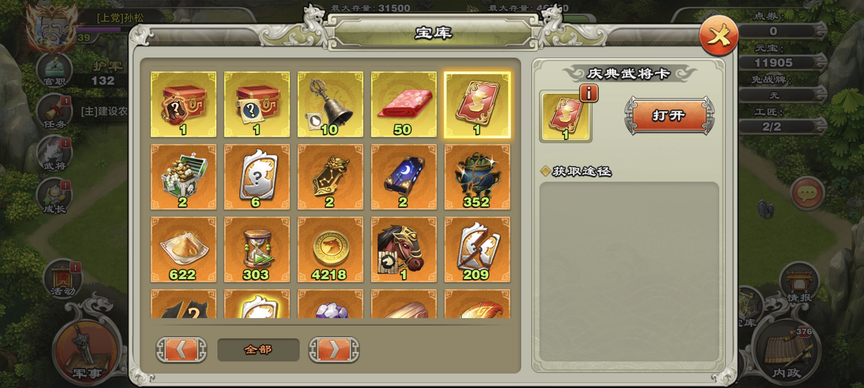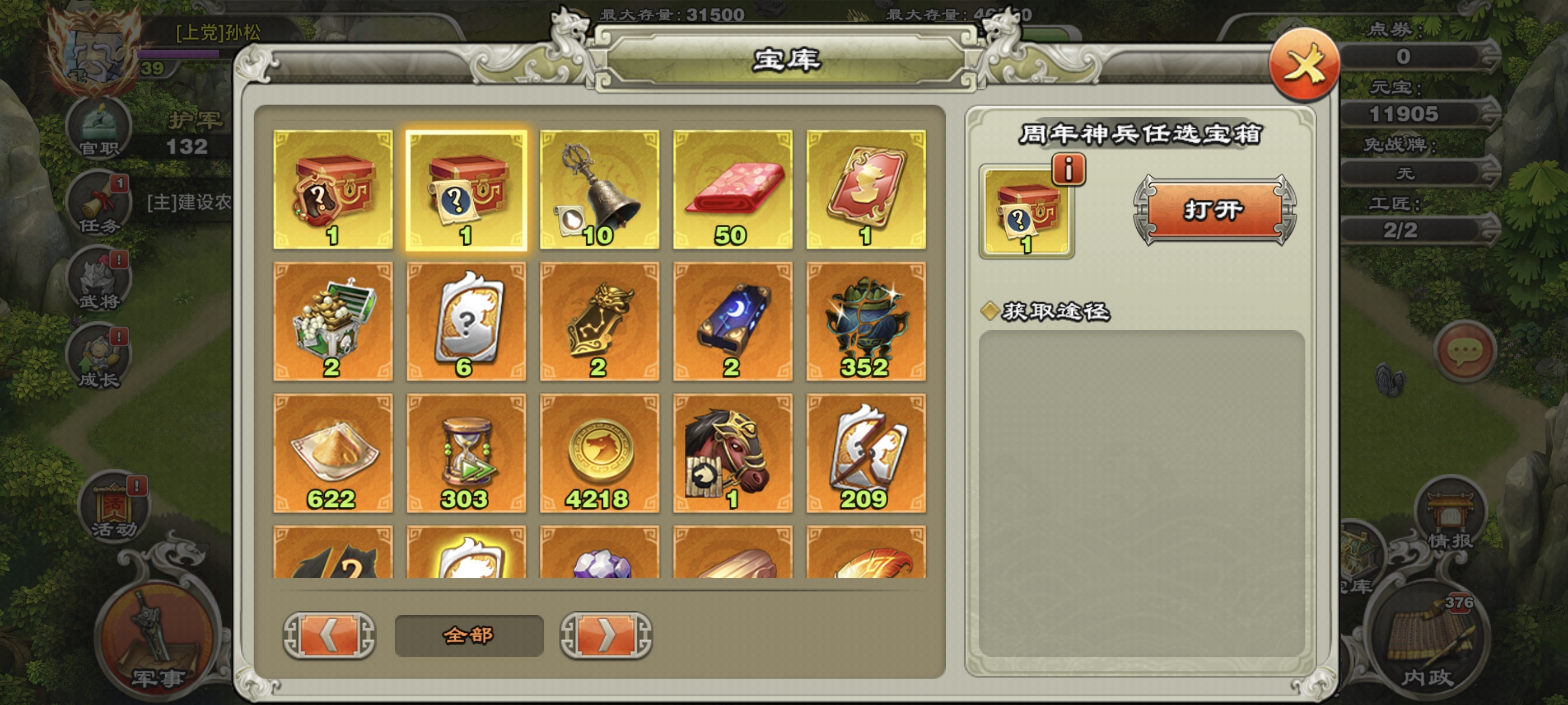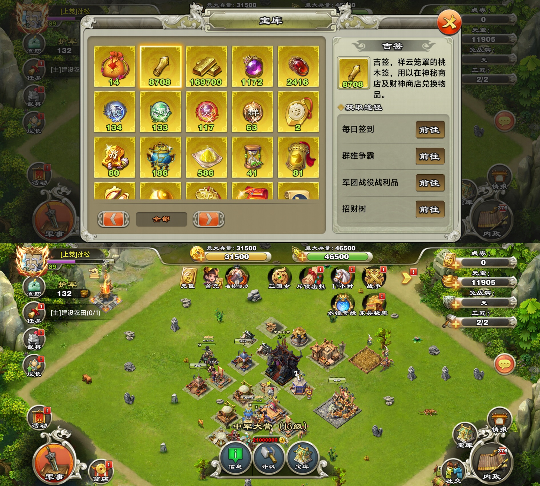 超级洁癖强迫症号,功绩一个没领,多余建筑没!水镜虎侯丶带8708吉签11905元宝其他的材料超级多,几个周年大礼包。自己打造小钢炮,才是游戏的乐趣。