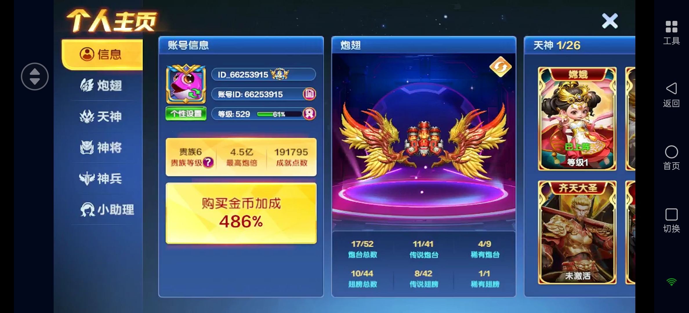 小米安卓机通用V6卖断9亿炮实炮4.5亿炮 20万亿 天神嫦娥6神将,能换绑。保证金商家安全可靠