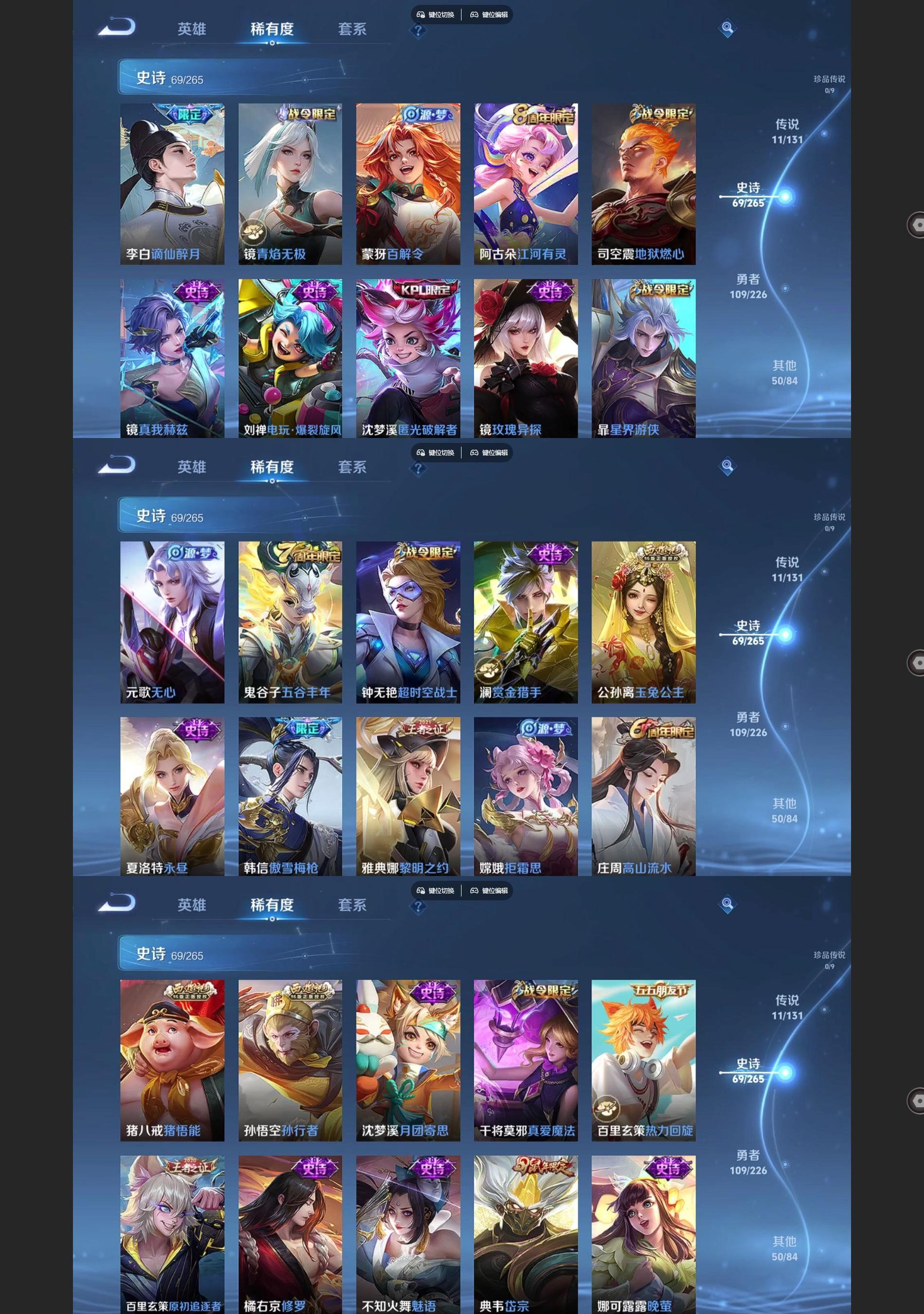 [王者荣耀【苹果版】]V711传说69史诗239皮肤至尊星耀IV