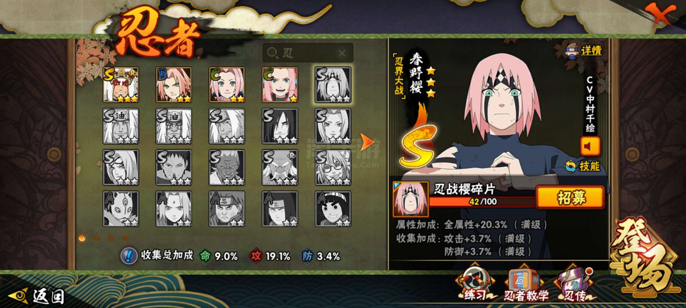 火影忍者【安卓QQ】50片忍战樱,7000金币,约百张高招
